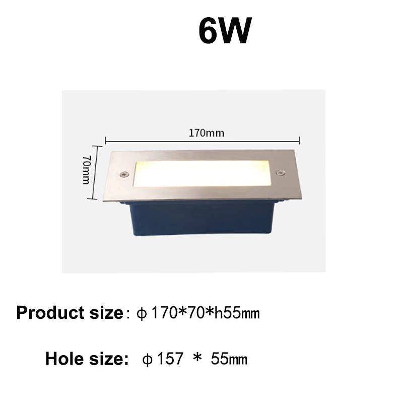 Технические характеристики: Название продукта: светодиодный светильник для лестницы/светодиодный ступенчатый светильник Светодиодный источник питания: 6 Вт Рабочее напряжение: AC85 ~ 265 В, 12 В Угол обзора бобов: 45 градусов Люмен: 90-100 лм/Вт Материал: нержавеющая сталь, закаленное стекло и пластик Цветовая температура: 6000 ~ 7000K (холодный белый) /4000 ~ 4200K (чистый белый) / 2700-3200K (теплый белый) Водонепроницаемый: IP67 Срок службы: 50000 часов Особенности: 1. Корпус лампы из нержавеющей стали высокого качества, прочный, водонепроницаемый и с большим отводом тепла. 2. Высокопрочное закаленное стекло, высокий светильник с коэффициентом пропускания и широкой областью освещения. 3. Крепежные винты из нержавеющей стали и Высокая емкость. 4. Низкий расход энергии, долгий срок службы, простота установки, уникальный и элегантный дизайн. 5.IP67, Высокая водонепроницаемость и Пыленепроницаемость, ударопрочность и устойчивость к коррозии.