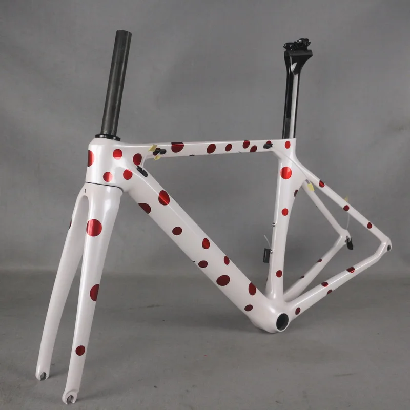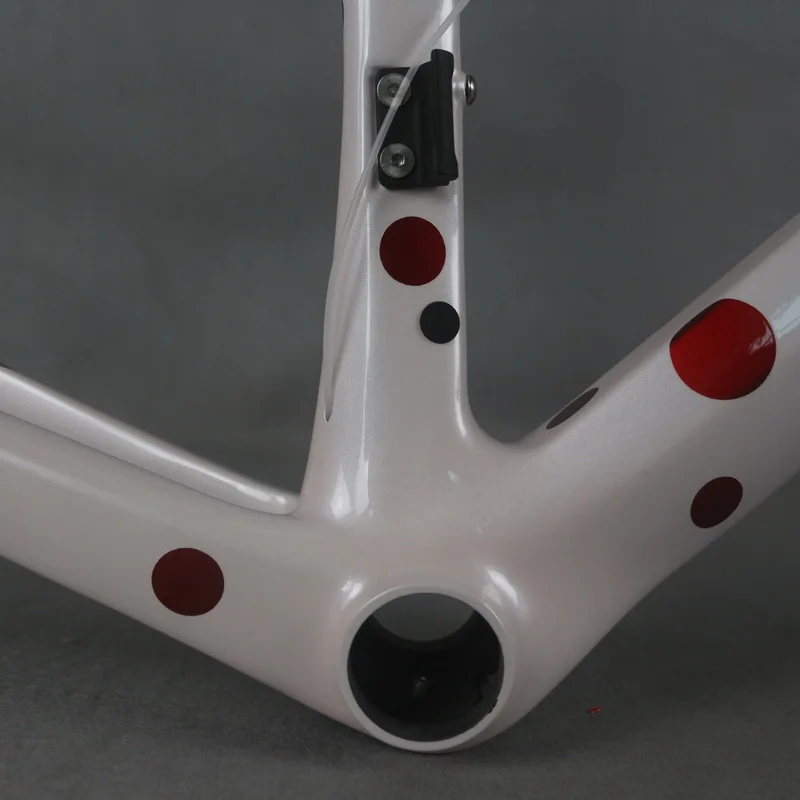 TT-X1 товара (рама/вилка/подседельный штырь) Размер: XXXS/XXS/XS/ S/M/ L Отделка: черная матовая отделка Тип: рама для гоночного велосипеда Материал: углеродное волокно Hight ModulusToray T800 Вес оправы: 1132 г/+-45 г (42,8 см) Вес вилки: 388/+-15 г, Вес стойки сиденья: 214/+-10 г Тип нижнего штабеля: BB86 Гарнитура: 1-1/8 ”,1-1/2” Размер колес: 700X25C/28c Страна происхождения: Гуандун Китай Гарантия: 2 года Происхождение: Гуандун, Китай
