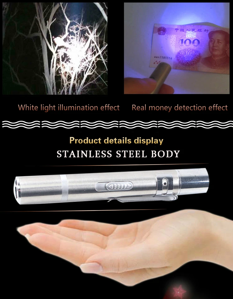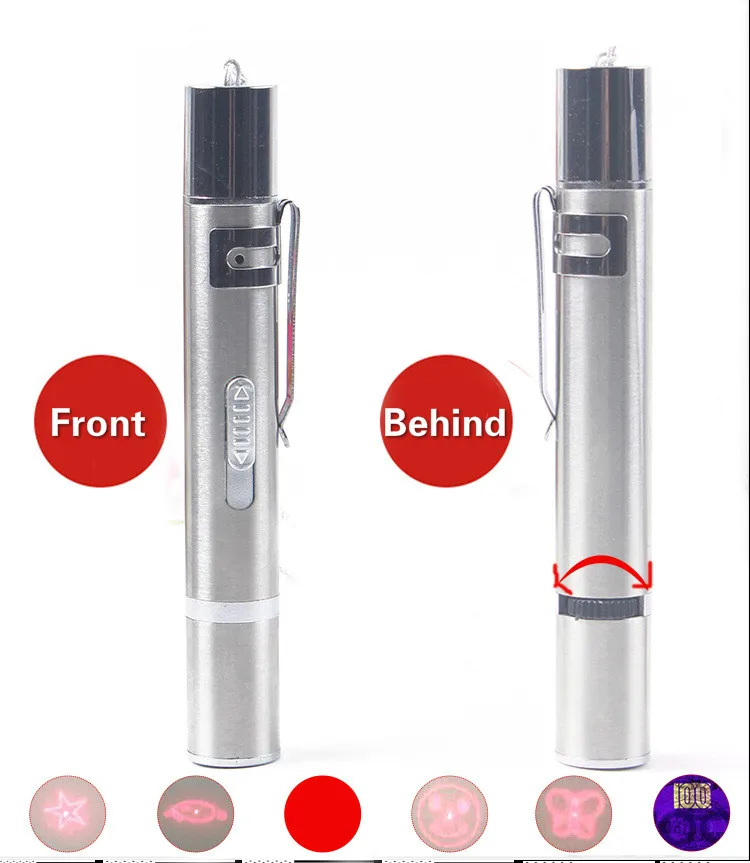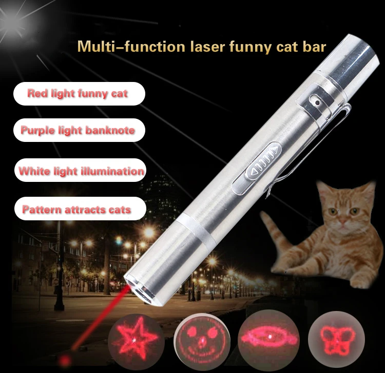 1, USB встроенный интерфейс, более удобный для переноски 2, три-в-одном держатель лампы, многофункциональный 3, красный свет может быть использован, чтобы подразнить кота 4, фиолетовый свет может использоваться для проверки банкнот 5, белый свет может быть использован для освещения, когда фонарик 6. Разнообразие узоров, добавьте в развлечение