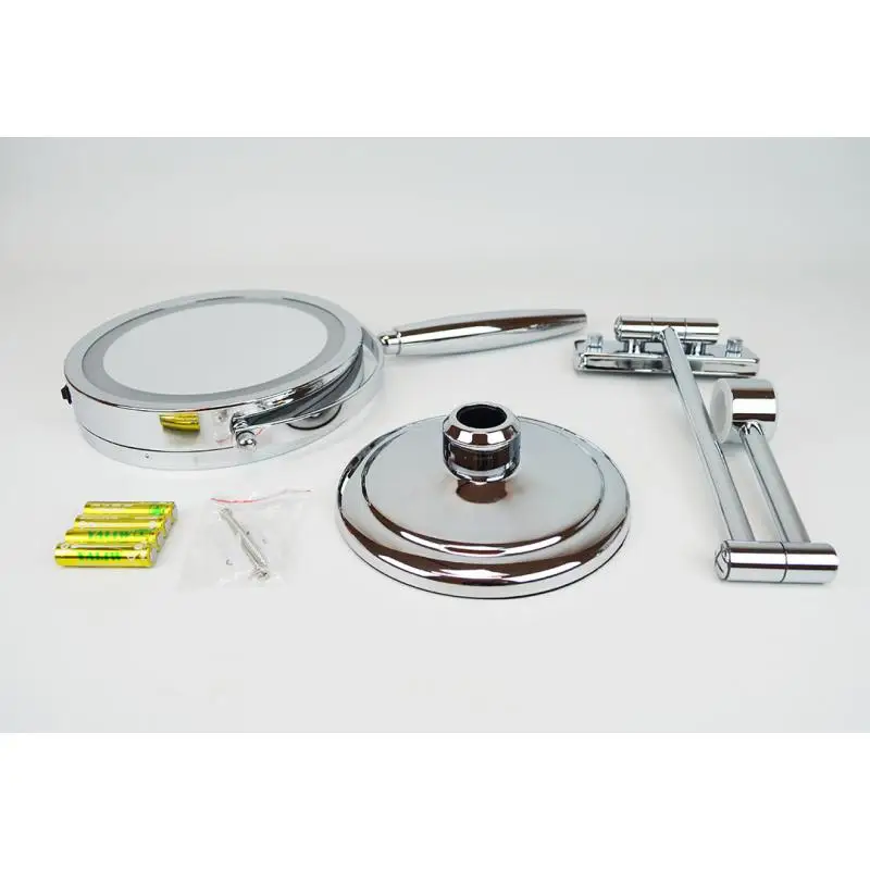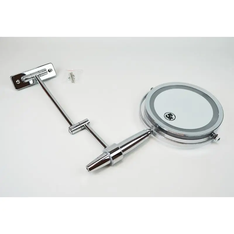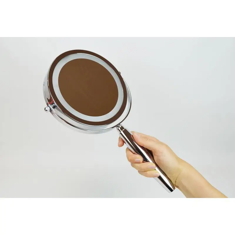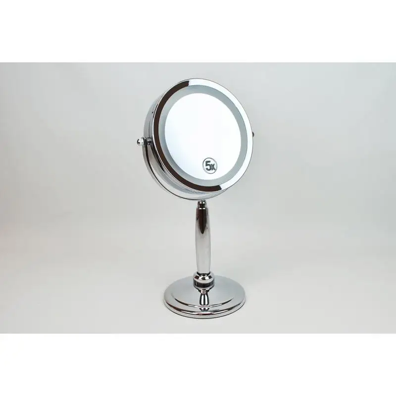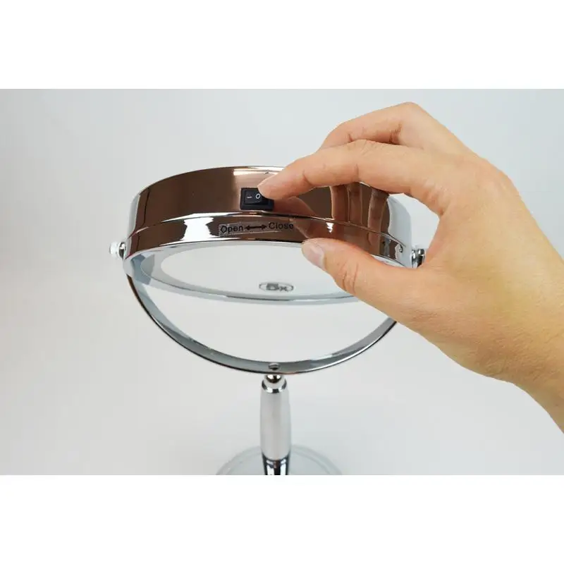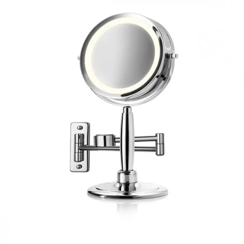 2 поворотных зеркала: обычное и с 5 кратным увеличением ◦ Подсветка по контуру зеркала ◦ Диаметр зеркала 13 см ◦ Высококачественный материал, хромированные части ◦ Устойчивая подставка-основание