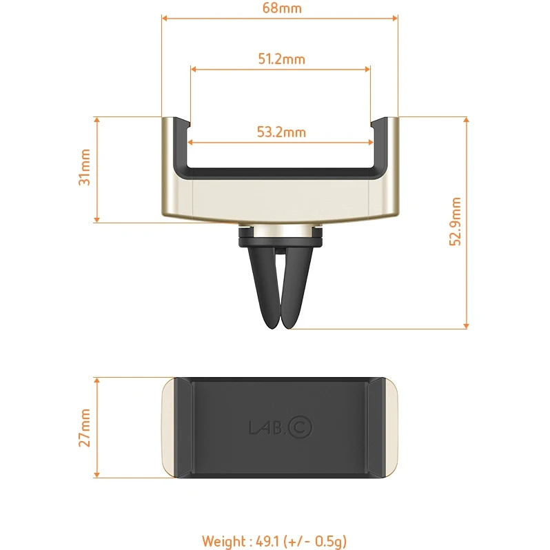 LAB.C New Air Vent Mount — это автомобильный держатель для смартфонов шириной от 53 до 95 мм.