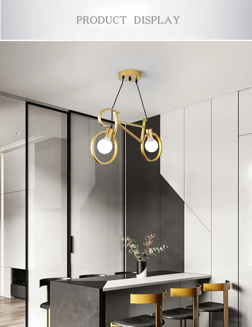 Цвет корпуса: черный, белый, золотой Материал: железо Размер: длина 61 см, высота 37 см Одвесных проводов: 1,2 м (можно настроить) (В этот подвесной светильник лампа не входит)