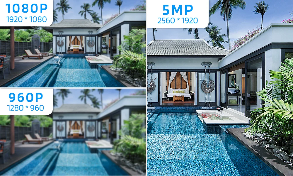 Как одна из лучших систем безопасности для дома/бизнеса, эта система безопасности записывает видео в реальном времени на всех каналах с высоким разрешением 5 МП, намного четче, чем 1440p и 1080p. Все камеры обеспечивают невероятно яркие и четкие изображения в реальном цвете, что позволяет очень четко видеть все предметы.
