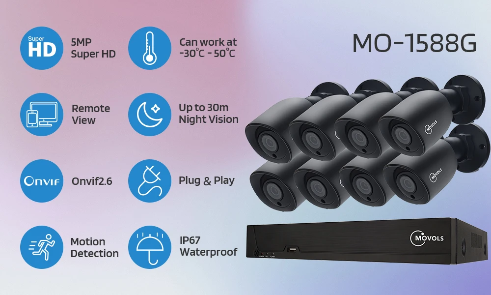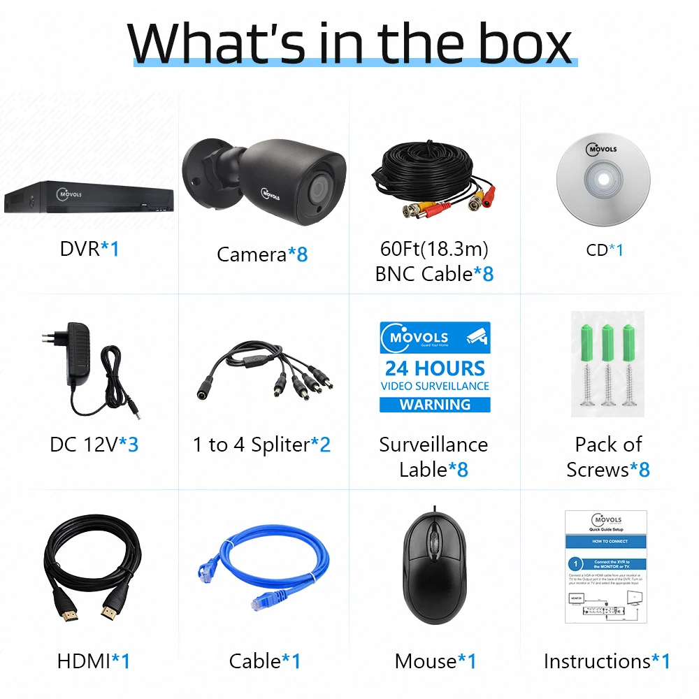 Movols penta-brid full HD рекордер интегрированный самоадаптивный режим для подключения всех типов камер (аналог, AHD,TVI,CVI и IPC), на основе этой передовой технологии, система будет записывать видео 1080P для всех камер.
