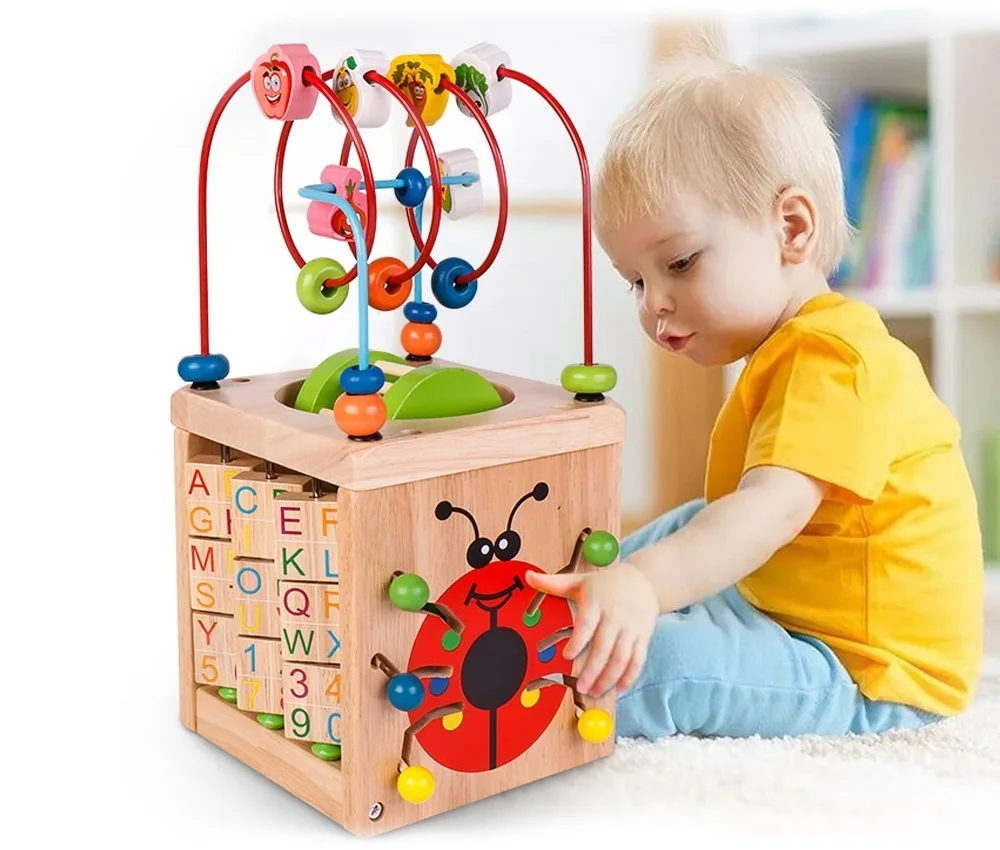 Новые деревянные 6 в 1 бусины лабиринт активность куб натуральный и нетоксичный центр деятельности коробка раннего обучения Развивающие игрушки для детей