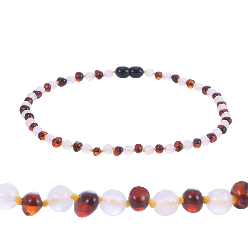 Натуральный анальгетик, янтарь поможет успокоить ребенка, не обращаясь к лекарственным средствам. Янтарь-это окаменелая смола, а не камень. Поэтому он теплый на ощупь, а также очень удобный и светильник. Ношение Прибалтики ожерелья из янтаря на коже может иметь успокаивающий и успокаивающий эффект на прорезывание зубов младенцев и малышей. Когда янтарь носится на коже, тепло кожи выделяет небольшое количество целебных масел из янтаря, которые затем впитываются через кожу в кровоток. Противовоспалительные и терапевтические свойства янтаря также признаются аллопантической медициной. В Австрии, Швейцарии и германии вы найдете янтарные ожерелья для прорезывания зубов, продающиеся в местных аптеках.