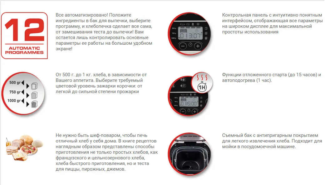Невероятно компактная хлебопечка Fast&Delicious от Moulinex может приготовить не просто различный хлеб, в том числе и безглютеновый, но сделает варенье, тесто, а также порадует всю семью вкусной кашей на завтрак. Брошюра с рецептами поможет освоить этот полезный прибор.
