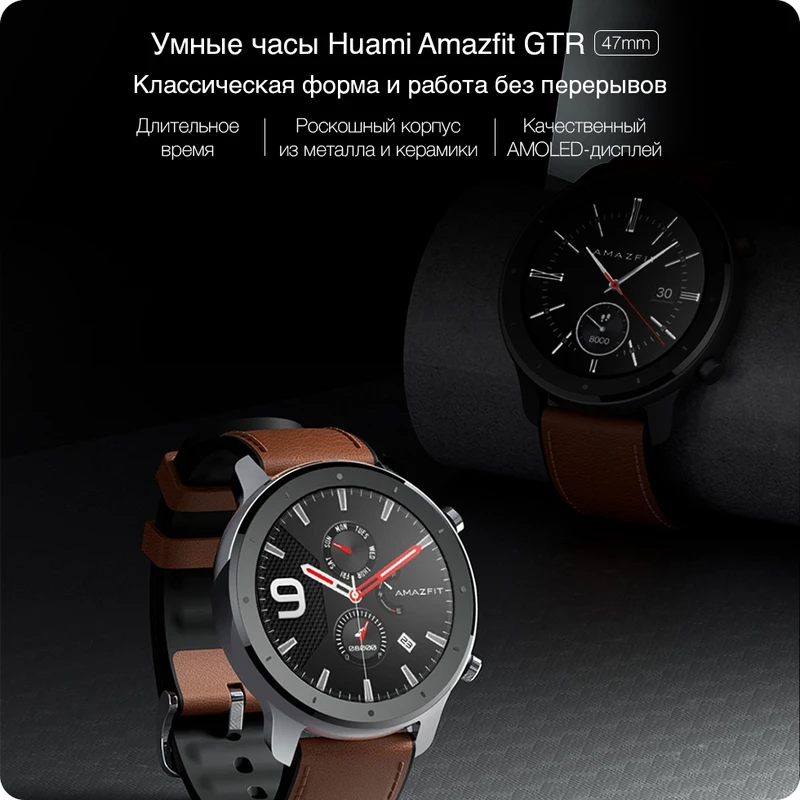 Amazfit GTR 47mm отдает дань уважения классике через свои привычные глазу черты. Круглые заводные головки, использование титана и других высококлассных материалов подчеркивают лаконичность дизайна, одновременно делая корпус прочным и легким.
