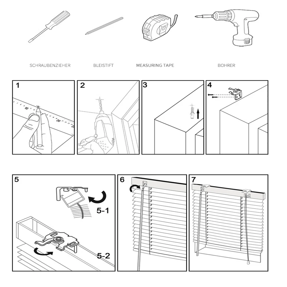 2. Индивидуальные жалюзи ширина = ширина ткани + ширина кронштейнов (3 ~ 4 см)
