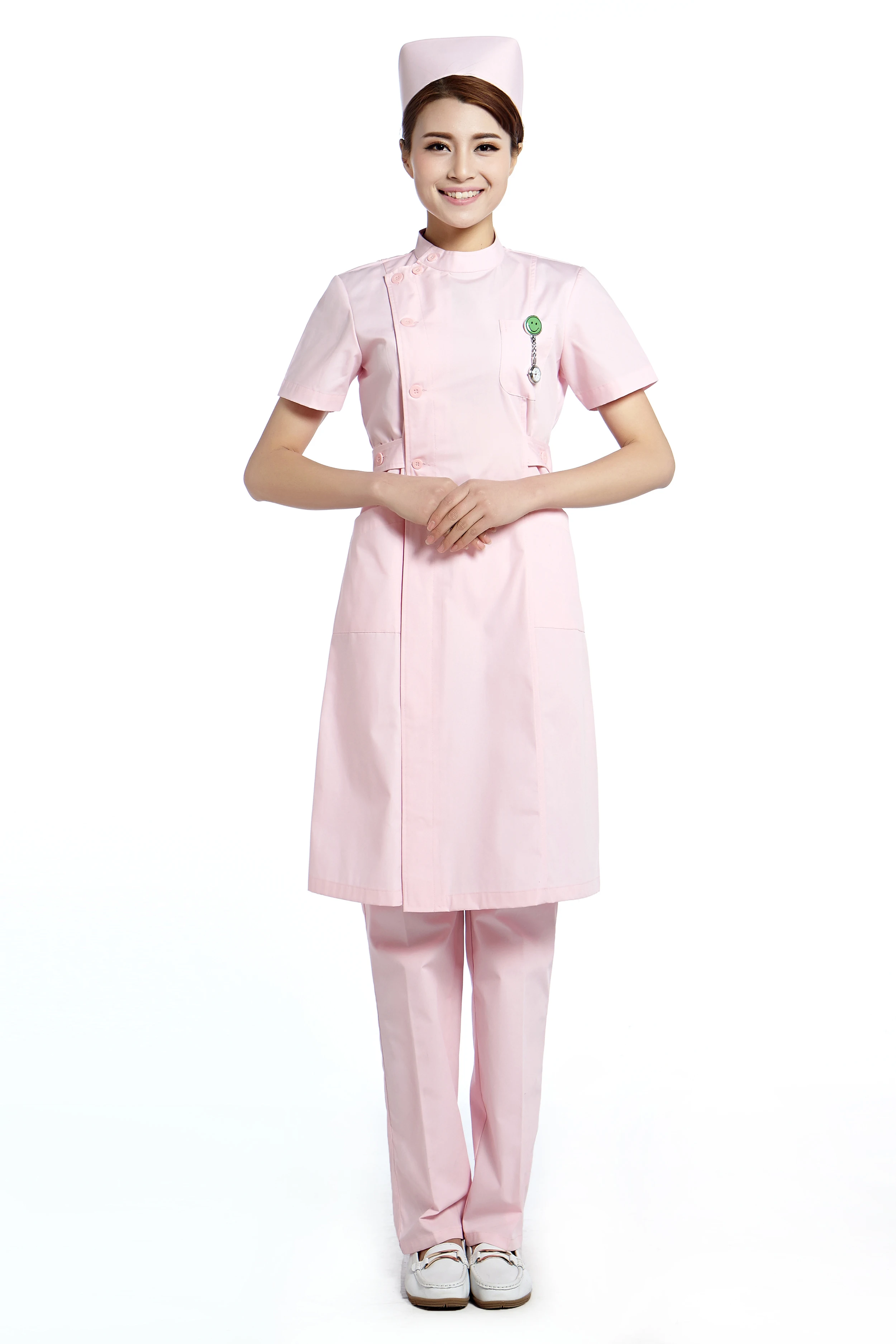 Этот товар представляет собой платье медсестры с коротким рукавом, брюки и шляпу в комплект не входят. Если вам нужны аксессуары на модели, пожалуйста, просканируйте наш магазин, чтобы приобрести.