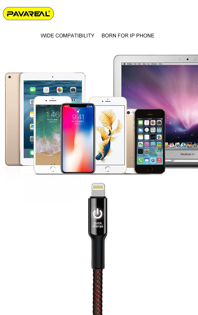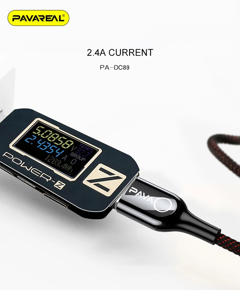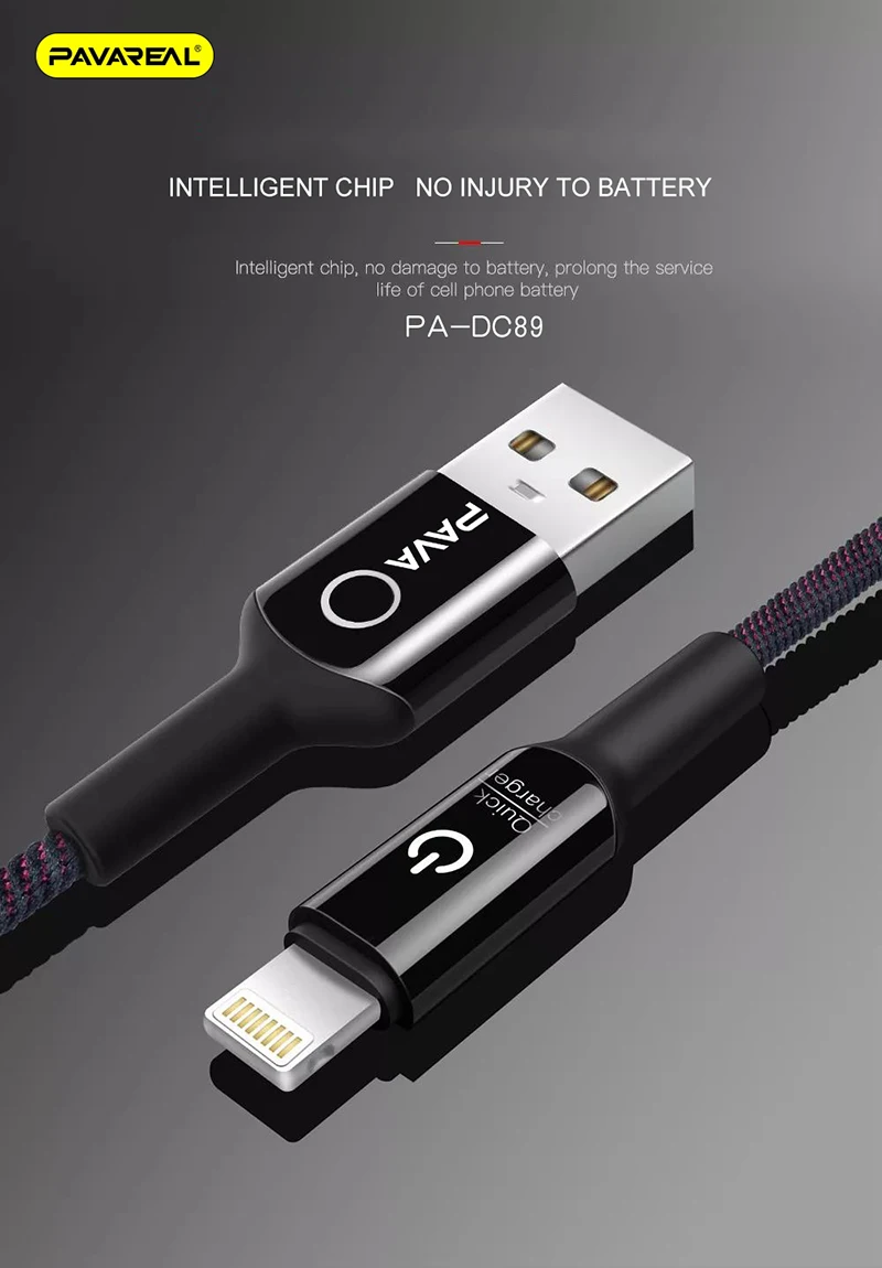 Intelligent chip, no damage to battery prolong the service life of cell phone battery TPE injection molding+ zinc alloy shell STRONG FLEXIBILITY ANTI BREAKING WIDE COMPATIBILITY BORN FOR IP PHONE Brand: PAVAREAL Model: PA-DC89 Item: smart off data cable Voltage: 5V DC Current: 2.4A (Max) Length: 10000mm Color: Black Applicable model: Lightning Material: TPE injection molding+zinc alloy shell Feature: smart chip protection, safe charging
