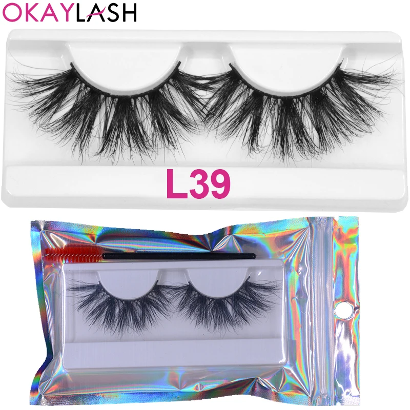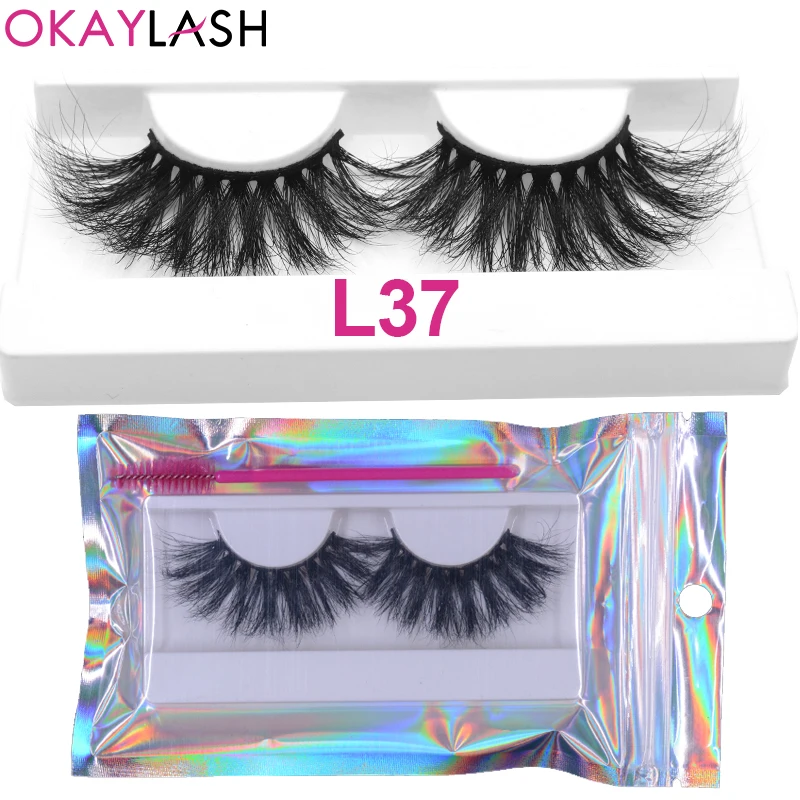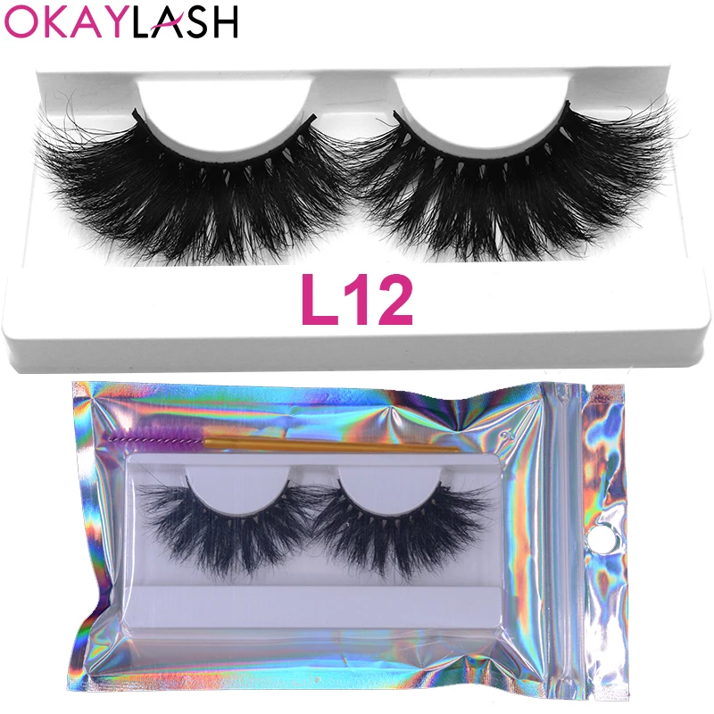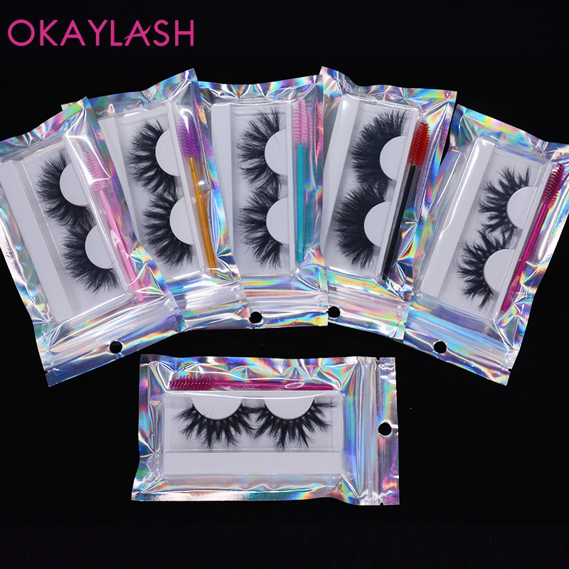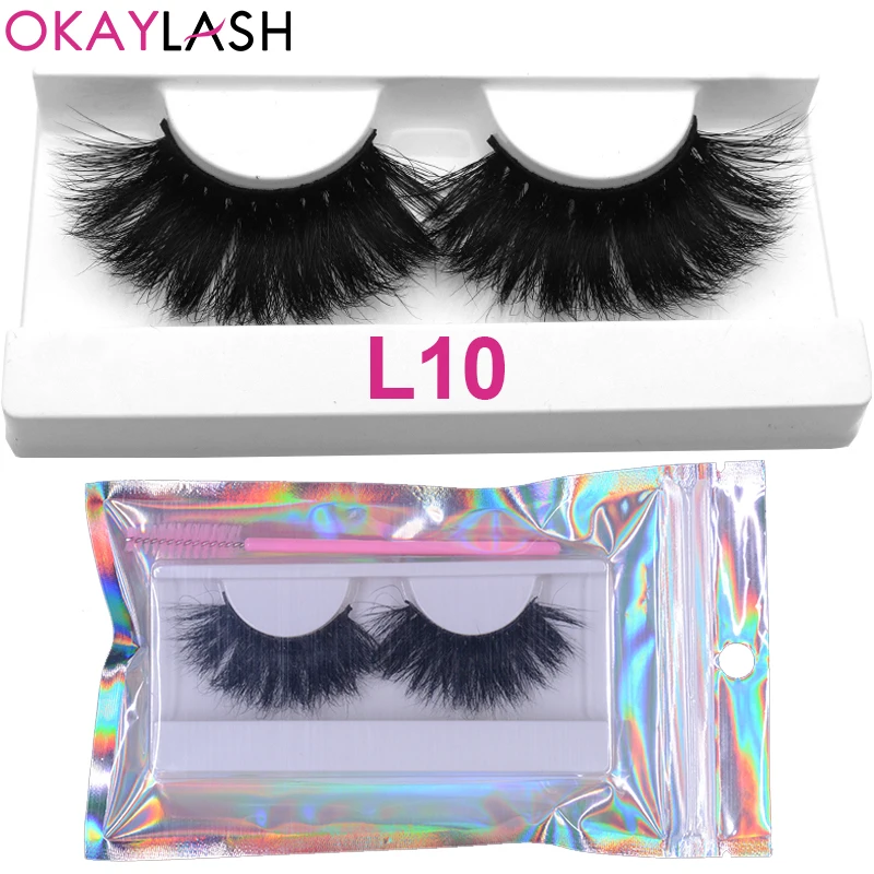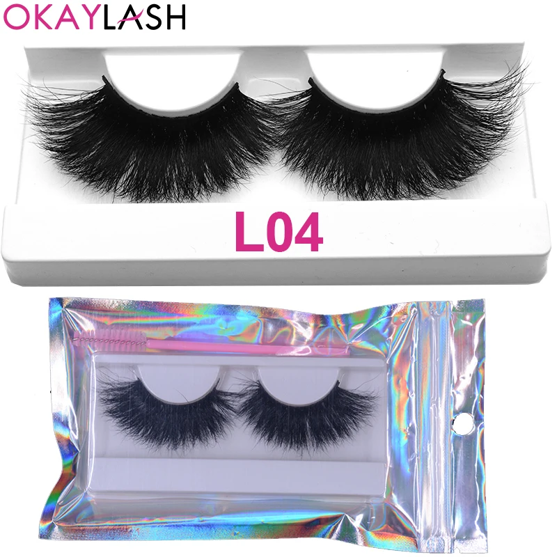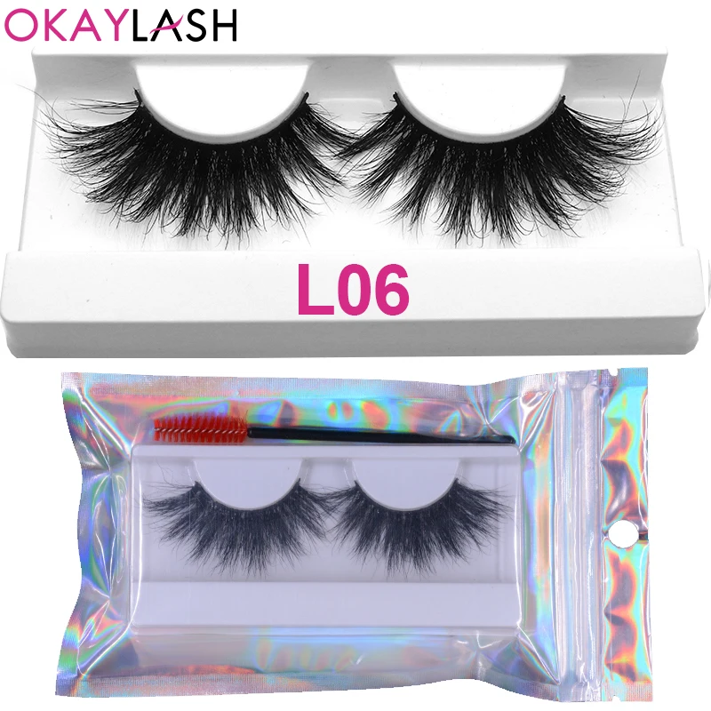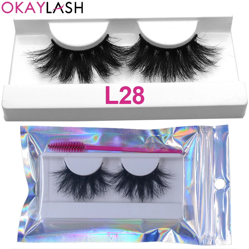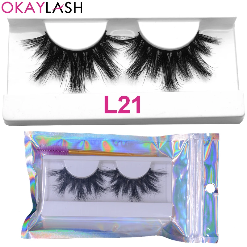 OKAYLASH 1 пара 25 мм мягкие удобные пушистые настоящие норковые полосы ресницы большой объем плотные ресницы с холиграфической сумкой для макияжа