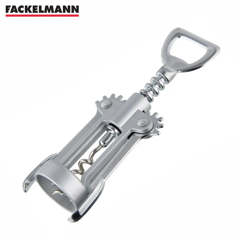 Штопор с рычагами FACKELMANN изготовлен из хромированного цинкового сплава и пластика.