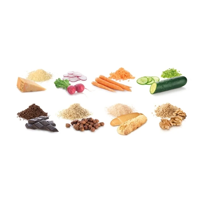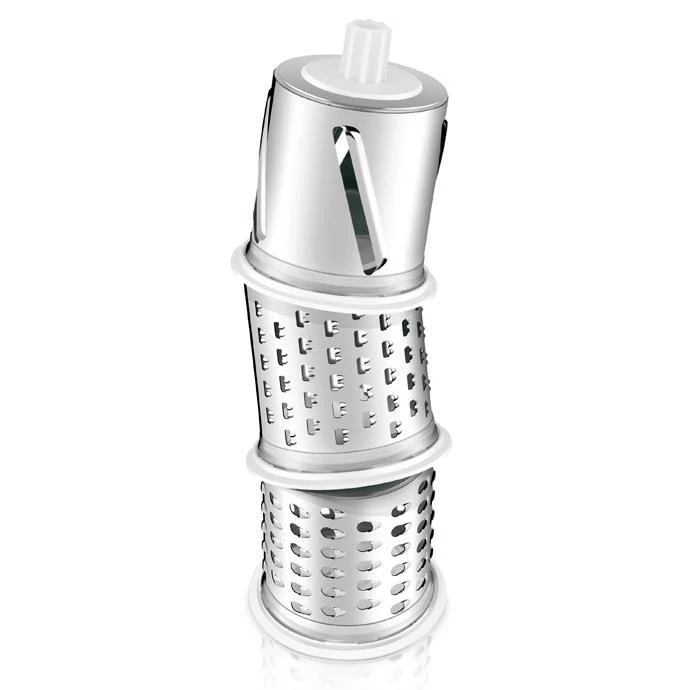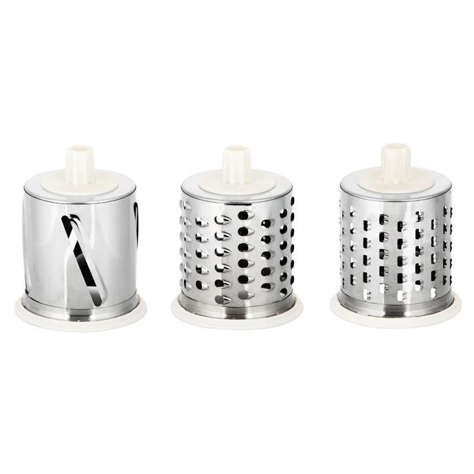 Три барабанные терки, предназначенные для мельницы для панировочных сухарей HANDY. Прекрасно подходят для тонкого и грубого натирания и нарезания ломтиками овощей, натирания овощей грубой и тонкой соломкой ("жульен"), натирания фруктов, орехов, шоколада, сыра и т.д.