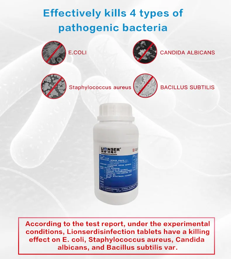 Бренд: Lionser Характеристики изделия: Бренд: Lionser Товар: таблетки Lonsol для дезинфекции Производственные предприятия: Shandong Jiajing Clean water treatment Co., ltd. Подходящие товары: одежда