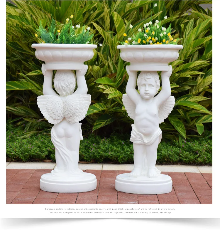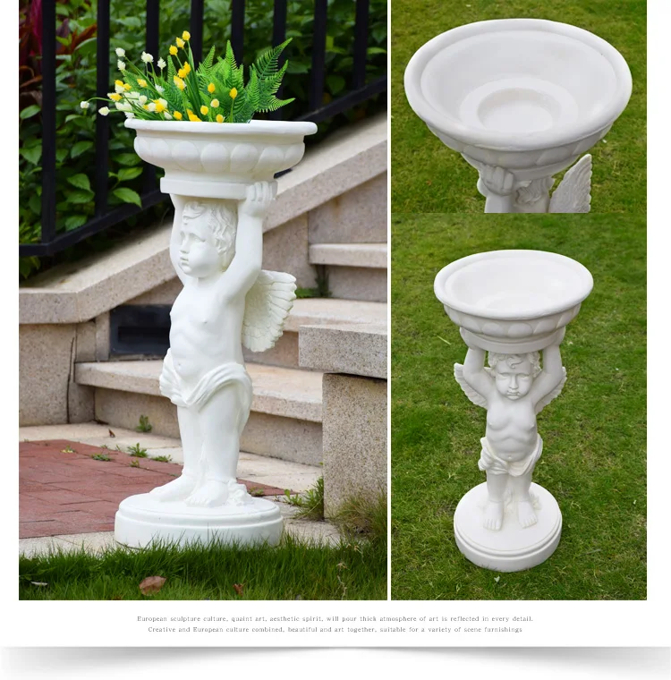 Большой размер 76 см декоративная статуэтка для домашнего сада аксессуары для двора Ангел Мальчик держит цветочный горшок парк открытый пейзаж скульптура