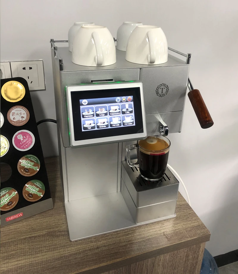Кофемашина для малого бизнеса или офисного использования Идеально подходит для Dolce gusto, молотого кофе, E.S.E. POD, Lavazza Blue. Программируемая сенсорная панель управления для регулировки температуры, размера кофе; Высококачественный корпус из алюминиевого сплава, обработанный с высокой точностью станка с ЧПУ; Мгновенный нагрев термо-блок для быстрого Пивоварения; Отдельный термо-блок для паровой генерации и автоматического вспенивания; Съемный резервуар для воды из нержавеющей стали, 4,5л/150 унций. SUS316 фильтр для воды; Ручка из красного дерева; Двухслойный лоток для капель; Автоматическое пополнение из бутылки или водопроводной воды.