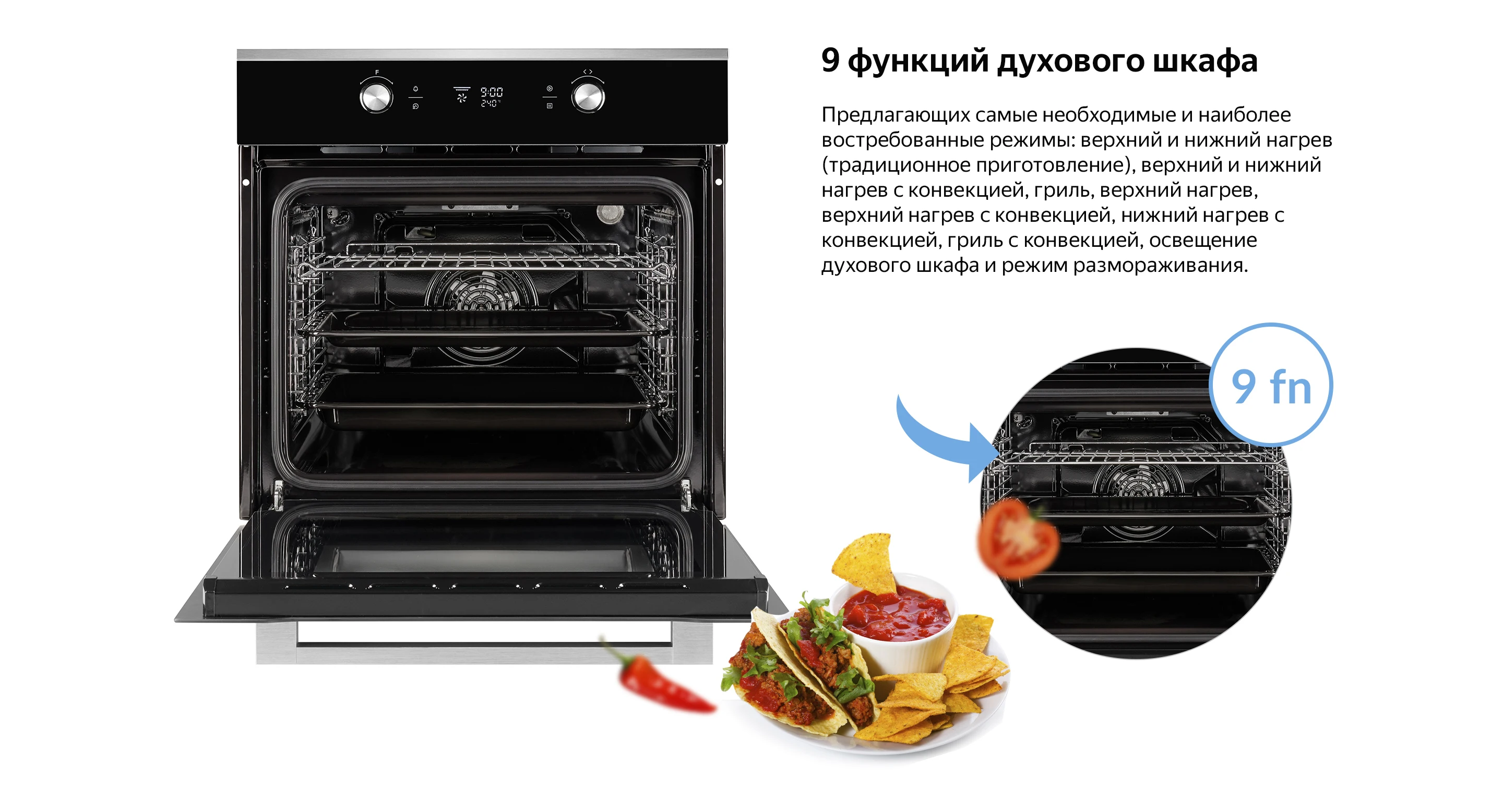 Тип духового шкафа: Электрический (независимый) Функции: Конфигурация Comfort+: 9 функций (подсветка, размораживание, верхний и нижний нагрев, нижний нагрев, верхний и нижний нагрев с вентилятором, турбовентилятор, двойной гриль, двойной гриль и вентилятор, нижний нагрев + турбо + вентилятор) Объём: 70 л Очистка духовки: Паровая Количество стекол в дверце: 3 Габариты (ШxГxВ), мм:: 595 x 575 x 595 Цвет: Черный Программатор: Сенсорный Дисплей: Большой сенсорный с удобной индикацией Переключатели: Утапливаемые Управление: Сенсорное Touch Control Панель управления: Из закаленного черного стекла Часы: Многофункциональные Электронный регулятор-термостат: Есть Отсрочка приготовления: Есть Таймер: Есть Аксессуары: 2 противня различной глубины и 1 решётка Боковая хромированная решетка: Есть Специальный дизайн двери с тройным стеклом: Есть Специальный дизайн двери с большим внутренним стеклом: Есть Вес нетто, кг: 33,2 кг Вес брутто, кг: 36,2 кг Габариты в упаковке (ШxГxВ), мм: 685 x 670 x 655Очень эффектные босоножки, почти как у моей любимой певицы Леди Гаги. Взяла сразу два варианта, с сердечками и с цветочками.... Читать отзыв полностью...