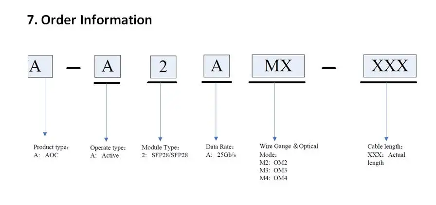 1. Применение Low низкие задержки и высокоскоростные соединения для высокопроизводительных вычислений (HPC) SR40 G Ethernet SR4 Other другие сети передачи данных с высокой пропускной способностью Area сеть хранения данных (SAN) 2. Особенности Quad четырехъядерный небольшой форм-фактор, подключаемый (QSFP) Compliant 40GBASE-SR4 совместимый Compliant QDR, DDR, SDR (Infiniband) совместимый Bi двунаправленное параллельное соединение Channels 10,3125 ГБ/сек. на одну полосу, x4 каналы До 100 м Connectors низкопрофильные разъемы Low низкое энергопотребление Bundle многомодовый волоконный массив Vc850nm VCSEL четыре массива Diode PIN Диод четыре массива Hot горячее подключение Management интерфейс управления I2C Чехол от 0 до 70 градусов чехол с температурой 3,3 3,3 В напряжение питания Electrical Электрический 38-контактный разъем 3. Описание -A4CMX-XXX серии являются активными оптическими кабелями (AOC), которые позволяют двунаправленный 40 Гбит/с передачи подходит для Ethernet 40GBASE-SR4 и InfiniBand QDR приложений и других высокой пропускной сети передачи данных, С такими преимуществами, как высокая скорость, высокая плотность, низкая задержка, низкое энергопотребление и вес светильник. 4. Стандарт Compliant совместим с IEEE 802.3ba-2010, приложение 86A для 40GBASE-SR4 Compliant совместим с InfiniBand EDR,FDR,QDR,DDR,SDR Compliant совместим с QSFP MSA(SFF-8436) Compliant RoHS Совместимость: без свинца 5. Характеристики производительности 5,1. Абсолютные максимальные оценки Эти значения представляют порог повреждения модуля. Стресс, превышающий любой из индивидуальных абсолютных максимальных рейтингов, может привести к немедленному разрушению модуля, даже если все другие параметры находятся в рекомендуемых рабочих условиях.