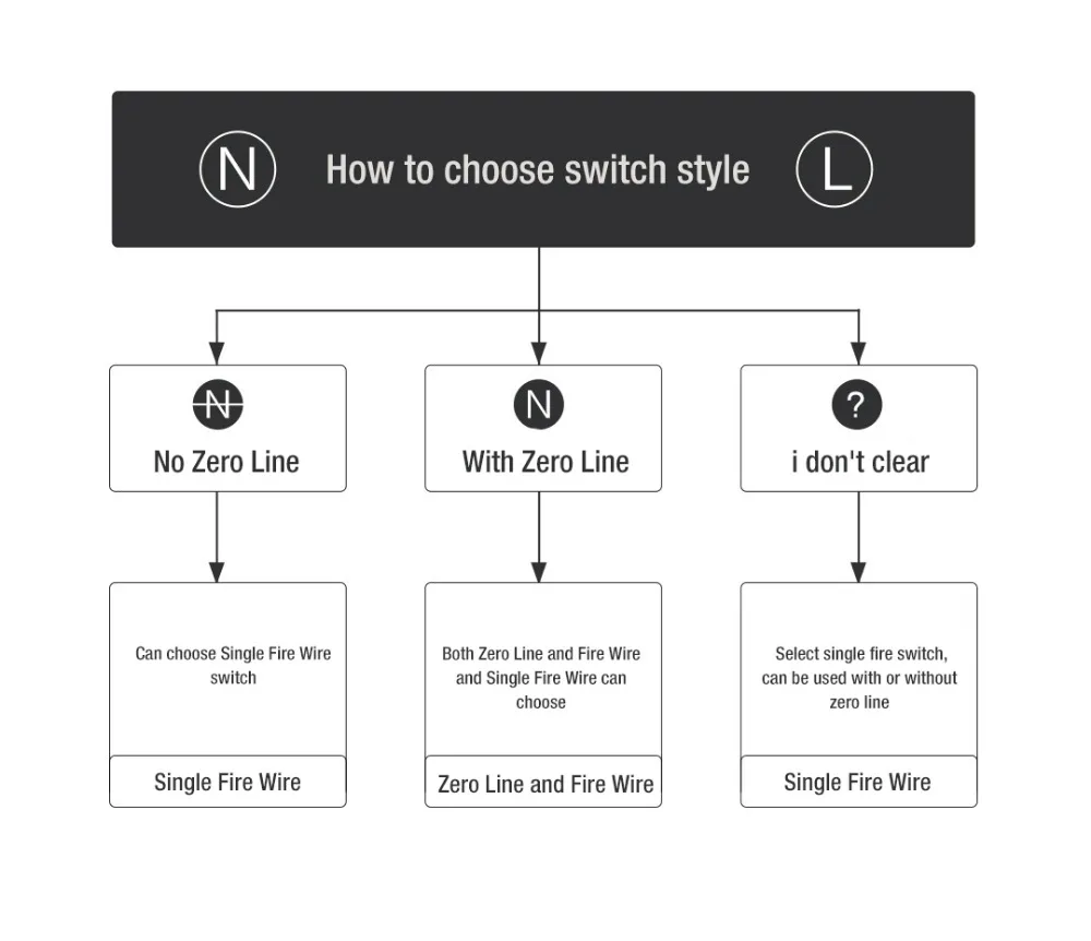 1. Проверьте свой старый переключатель, если у вас есть нейтральный провод, вы можете выбрать наш переключатель с нейтральным проводом. Если нет, вы должны выбрать, чтобы не иметь нейтральный провод. Вы не знаете, имеет ли переключатель нейтральный провод, вы можете выбрать продукт без нейтрального провода.