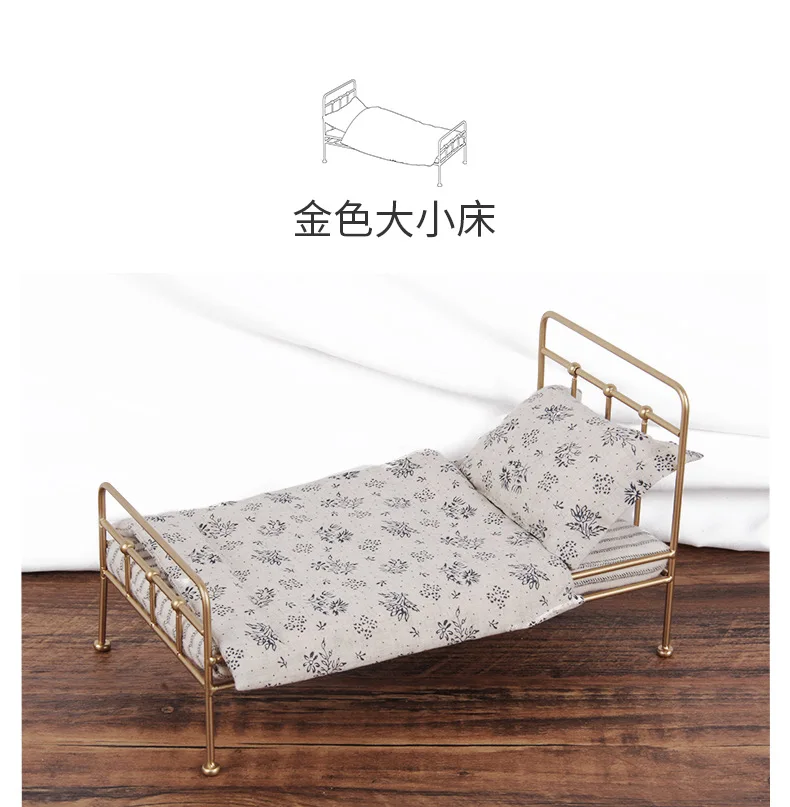 Скандинавская Золотая маленькая кровать, большая кровать, детская кукольная спальная мебель Описание: Размер: маленькая кровать: 28,6*15*16 см, большая кровать: 45,1*21*19,2 см Материал: металл Количество: 1 шт. Примечания: 1. Пожалуйста, учитывайте разницу в 1-2 см из-за ручного измерения. 2. Реальный цвет может немного отличаться от изображений из-за разрешения экрана компьютера, яркости, контрастности и т. д. надеемся на понимание. Хорошего дня покупок!