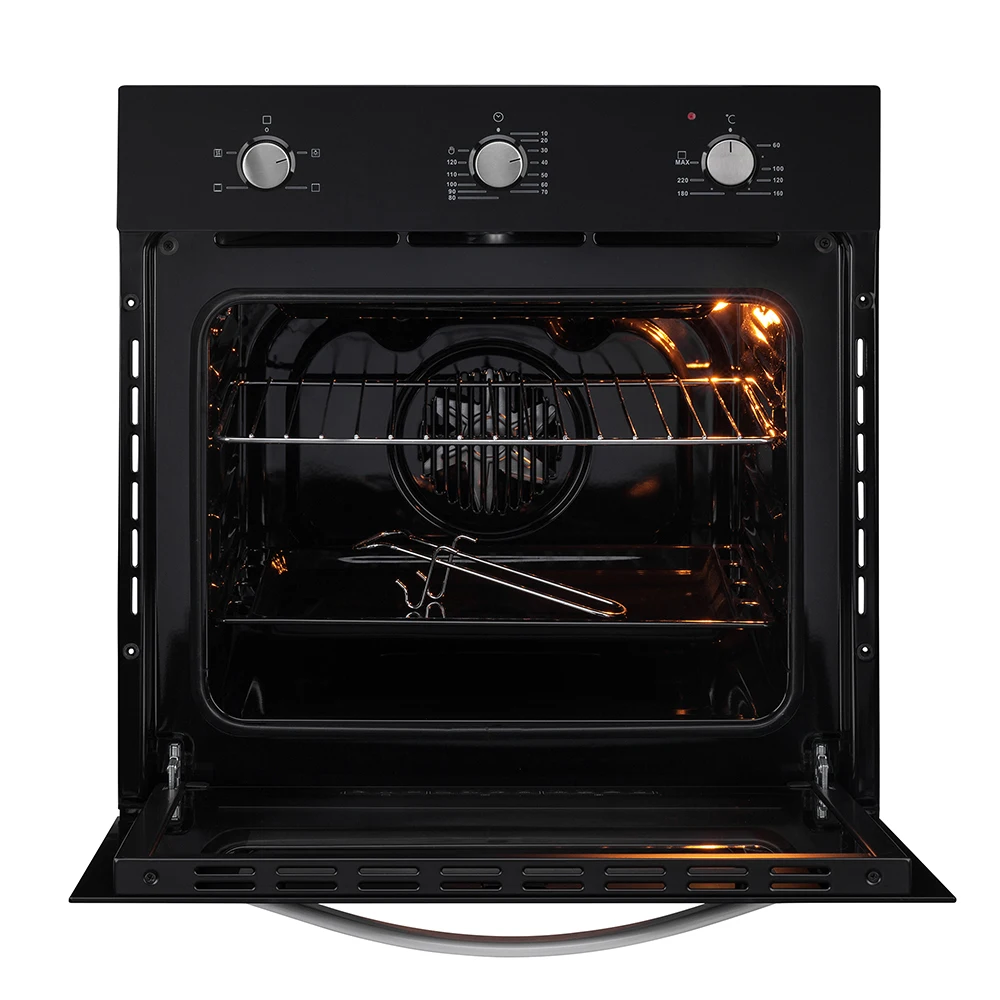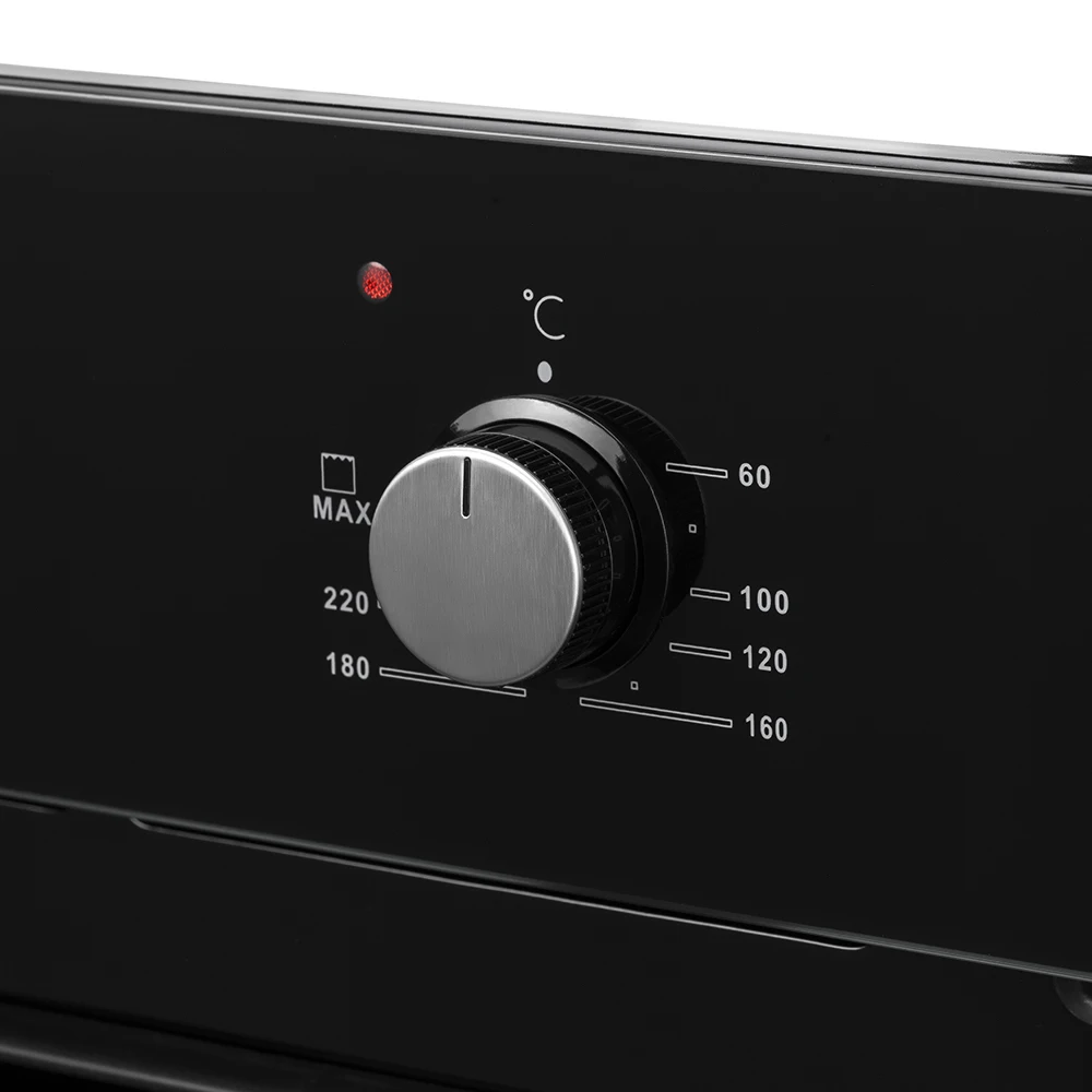 Корпус электродуховки из закалённого стекла, окрашенный в черный цвет и дополненный серебристыми ручками Push-pull, превосходно сочетается с любым кухонным интерьером. Фронтальная часть модели изготовлена из прочного закаленного стекла, которому не страшны удары и другие механические воздействия. Компактные габариты позволяют встроить ее в столешницу небольшого кухонного гарнитура, но, несмотря на это, она обладает достаточным объемом для приготовления больших порций в один заход.