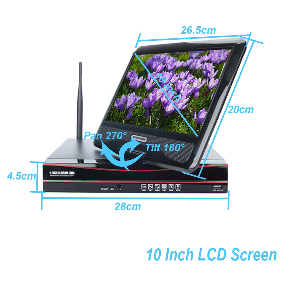 Hiseeu 4CH 2MP 1080P беспроводные NVR наборы 12 'LCD HD наружная безопасность 2MP IP камера видеонаблюдения wifi cctv камера система Основные Особенности 1, разрешение HD 1080P 2,NVR, собран в 10 дюймов ЖК-дисплей дисплей 3, беспроводное соединение между NVR и IPC 4, водонепроницаемая ip-камера может использоваться в помещении/на улице 5, подключи и работай, легкий мобильный доступ (Поддержка iPhone,Android) 6. Обнаружение движения, оповещение по электронной почте 7. Поддержка нескольких языков