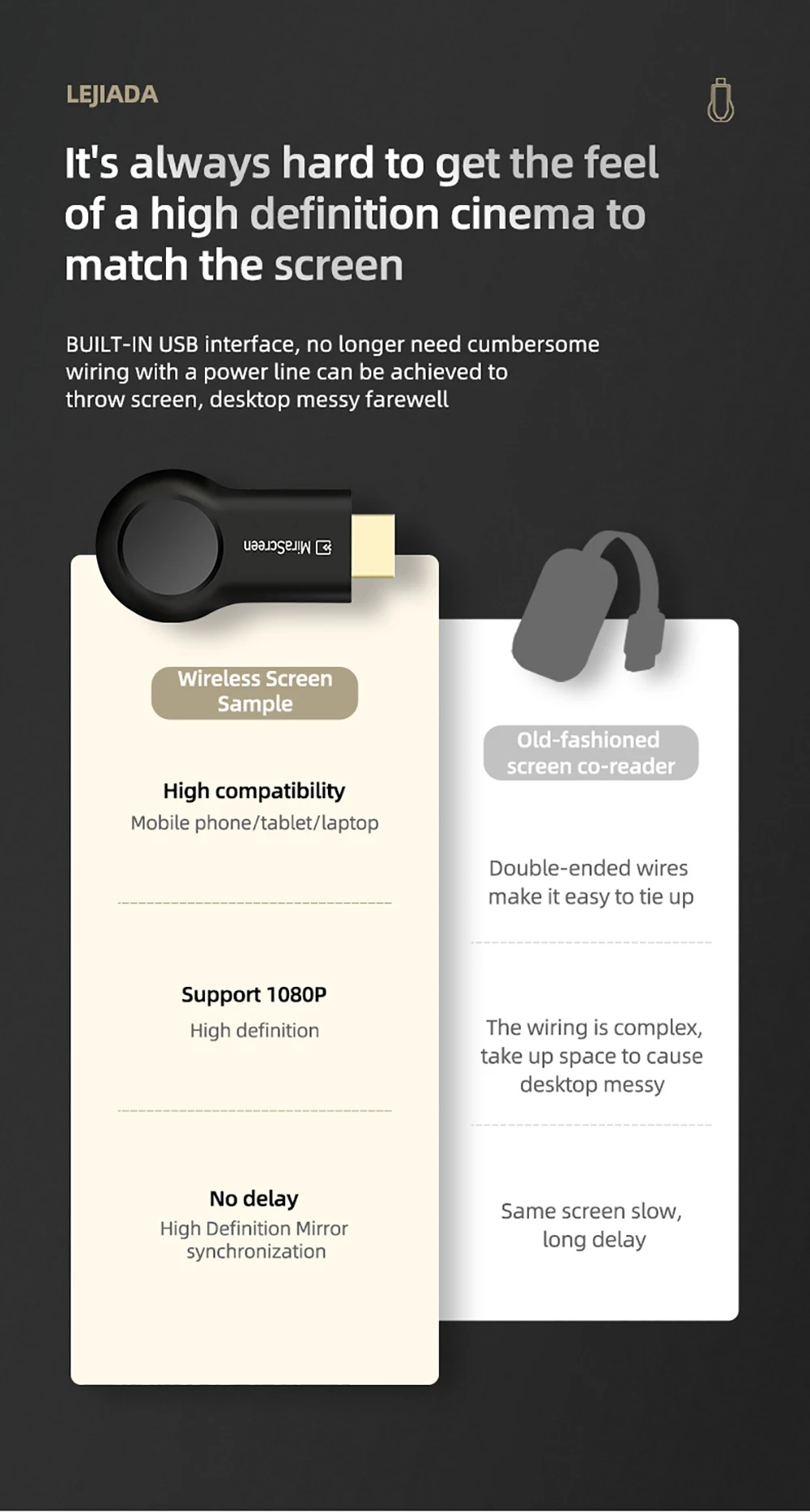 VEIDADZ мобильный ТВ проектор беспроводной же экран 1080P HDMI HD Push Treasure
