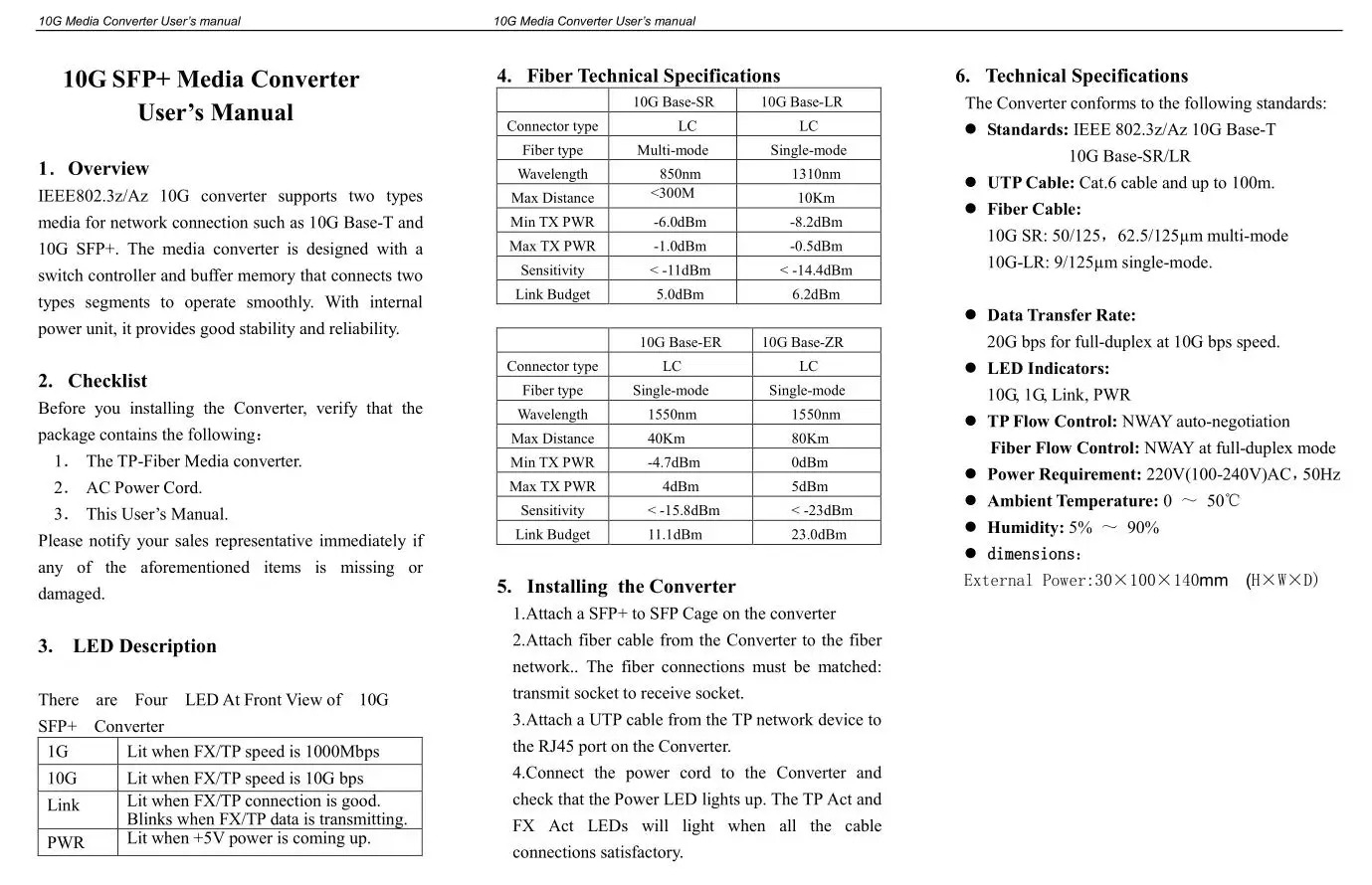 10G Media Monverter SFP к RJ45 10GBase-TX и 10GBase-FX медиаконвертер без модуля SFP
