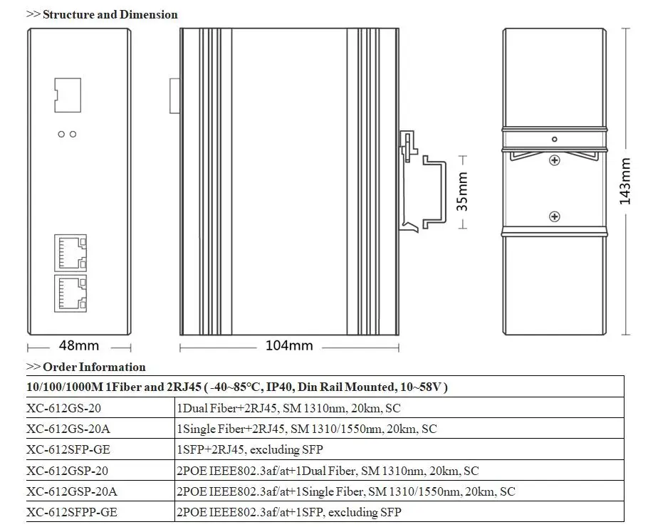 Входное напряжение: DC10 ~ 58 в (избыточное) Рабочая температура: -40 ℃ ~ + 85 ℃ Чехол: защита IP40, дизайн без вентилятора Антистатический уровень: 8KV-15KV Средняя наработка на отказ: 100000 часов > Описание Коммутатор Ethernet использует передовую архитектуру, безвентиляторную и энергосберегающую конструкцию. Дизайн соответствует стандарту Ethernet с lightning и антистатической защитой. Они применяются к широкому диапазону рабочих температур от-40 °C до + 85 °C с стабильной и надежной производительностью. Они могут широко применяться в различных областях широкополосной передачи данных, таких как интеллектуальная транспортировка, телекоммуникации, безопасность, финансовые ценные бумаги, Таможня, доставка, мощность, водное хозяйство и нефтяные месторождения.