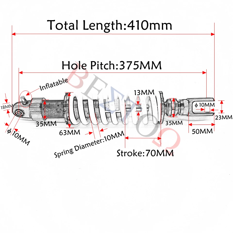 Наименование: задний амортизатор мотоцикла Стиль: 100% новый бренд Происхождение: материковый Китай Подходящие модели: универсальные для большинства моделей с шагом монтажного отверстия 375/435 мм. Примечание: Пожалуйста, проверьте размер перед подтверждением.