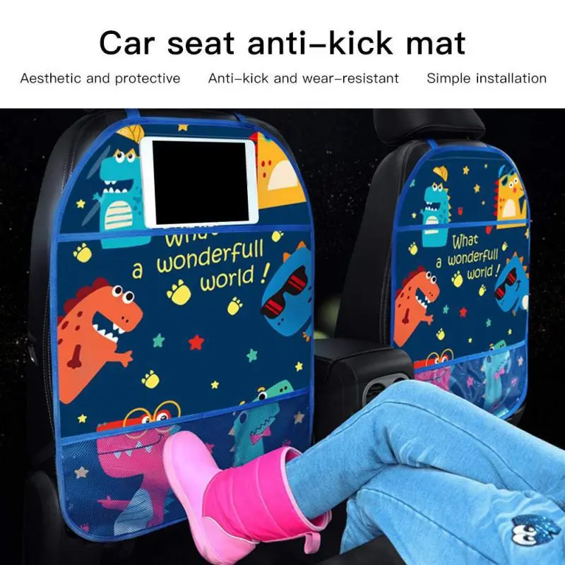 Мультяшный автомобильный коврик с защитой от ударов, детский анти-грязевой коврик, автомобильный органайзер, подставка для планшета, подвесная сумка