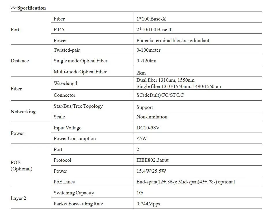Входное напряжение: DC10 ~ 58 в (избыточное) Рабочая температура: -40 ℃ ~ + 85 ℃ Чехол: защита IP40, дизайн без вентилятора Антистатический уровень: 8KV-15KV Средняя наработка на отказ: 100000 часов > Описание Коммутатор Ethernet использует передовую архитектуру, безвентиляторную и энергосберегающую конструкцию. Дизайн соответствует стандарту Ethernet с молниеносной и антистатической защитой. Они применяются к широкому диапазону рабочих температур от-40 °C до + 85 °C с стабильной и надежной производительностью. Они могут широко применяться в различных областях широкополосной передачи данных, таких как интеллектуальная транспортировка, телекоммуникации, безопасность, финансовые ценные бумаги, таможня, доставка, энергия, водное сохранение и нефтяные месторождения.