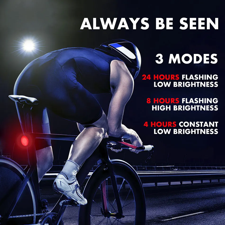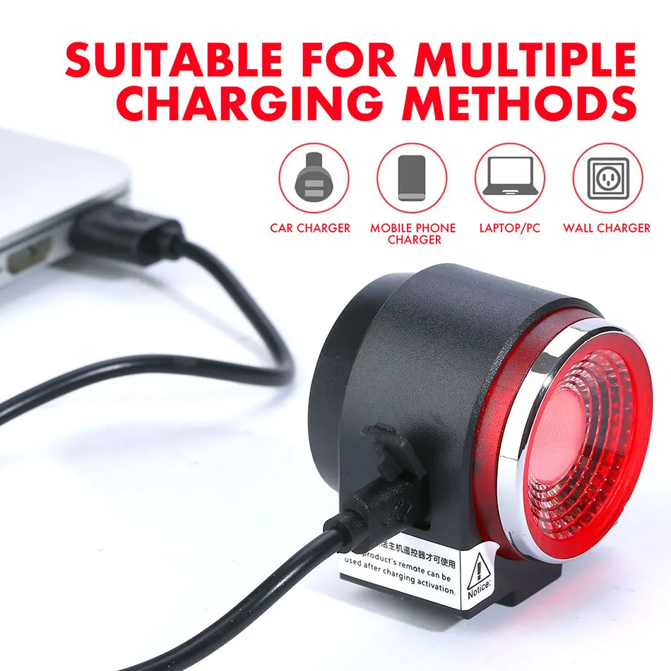 【Интеллектуальная Тормозная Индукционная технология 】 Конструкция тормозного датчика принимается, индукция чувствительна, задний светильник автоматически включается во время торможения и виден на большом расстоянии, которые могут привлечь внимание транспортных средств сзади и обеспечить вашу безопасность. 【Интеллектуальный светильник-технология обнаружения В режиме «Быстрое мигание и дыхание» светильник-датчик вспышка автоматически включается при низкой яркости и выключается под светильник высокой интенсивности. Выделите бусины COB лампы, три режима. 【Сигнализация анти-тефт】 В режиме будильника, при любом прикосновении, стуке, вибрации, задний светильник будет обнаружен, и сигнал тревоги будет выдан 2 раза немедленно, и он будет непрерывно оповещаться в течение 30 секунд. Он может достигать 105-120 дБ каждый раз. 【Функция радиосигнала 】 Нажмите кнопку «звонок» на пульте дистанционного управления, вы услышите мелодию звонка «di .. di», удерживайте кнопку «звонок» в течение 5 секунд, вы можете переключаться между 3 различными режимами: «Сирены», «Twitter» и «электрический звонок» 【Usb-зарядка и водонепроницаемость IPX5 Поддерживает быструю зарядку 2A, самый длинный срок службы батареи-до 40 часов. Будь то дождливая или Снежная, задние фонари могут нормально работать и сопровождать вашу поездку.