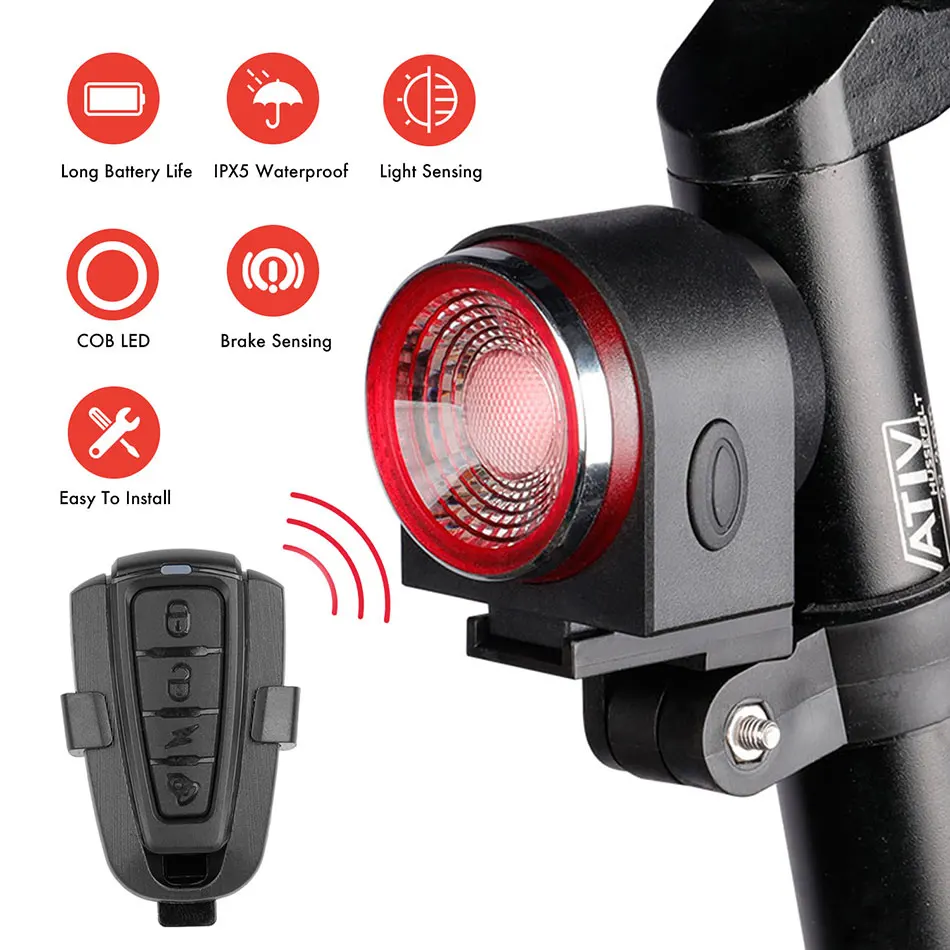 Умный велосипедный светильник с дистанционным управлением, с защитой от воровства, с usb-зарядкой, светодиодный задний фонарь для велосипеда, для велосипедной безопасности, IPX5, водонепроницаемый