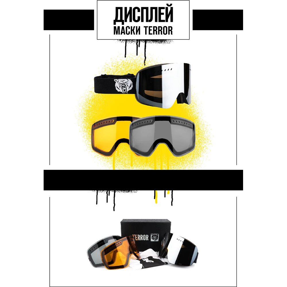 Маска TERROR CONQUER - это безоправный форм-фактор с 3 линзами в комплекте на любую погоду, современный дизайн, широкий угол обзора, а кроме того, идеальная посадка и совместимость со шлемом TERROR.