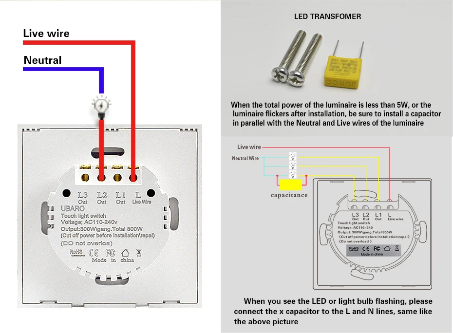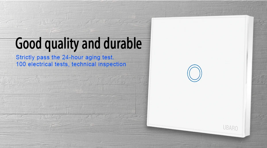 1. Название бренда: UBARO 2. Кнопка: 1 банда, 2 банды, 3 банды на выбор 3. Цвет: черный, белый, золотой 4. Размер: 8,6*8,6*3,5 см/3,4*3,4*1,4 "(Д * Ш * В) 5. Ток: 10A 6. Ватт: 3-300 Вт/комплект 7. Рабочее напряжение: 170-240 В переменного тока 8. Рабочая температура: -20 ℃ ~ + 70 ℃ 9. Относительная влажность: 10% ~ 90% 10. Механический срок службы: 100000 раз 11. Сертификация: CE,CCC ,ROHS 12. Гарантия: 1 год 13. Время доставки: <3 дня получили ваш заказ 14, вес брутто: 0,15 кг/5,25 oz Вес нетто: 0,14 кг/4,9 oz 15. Размеры посылка: 9,0*9.0x4.0 см/3,5x3,5x1,55 (Д * Ш * В)
