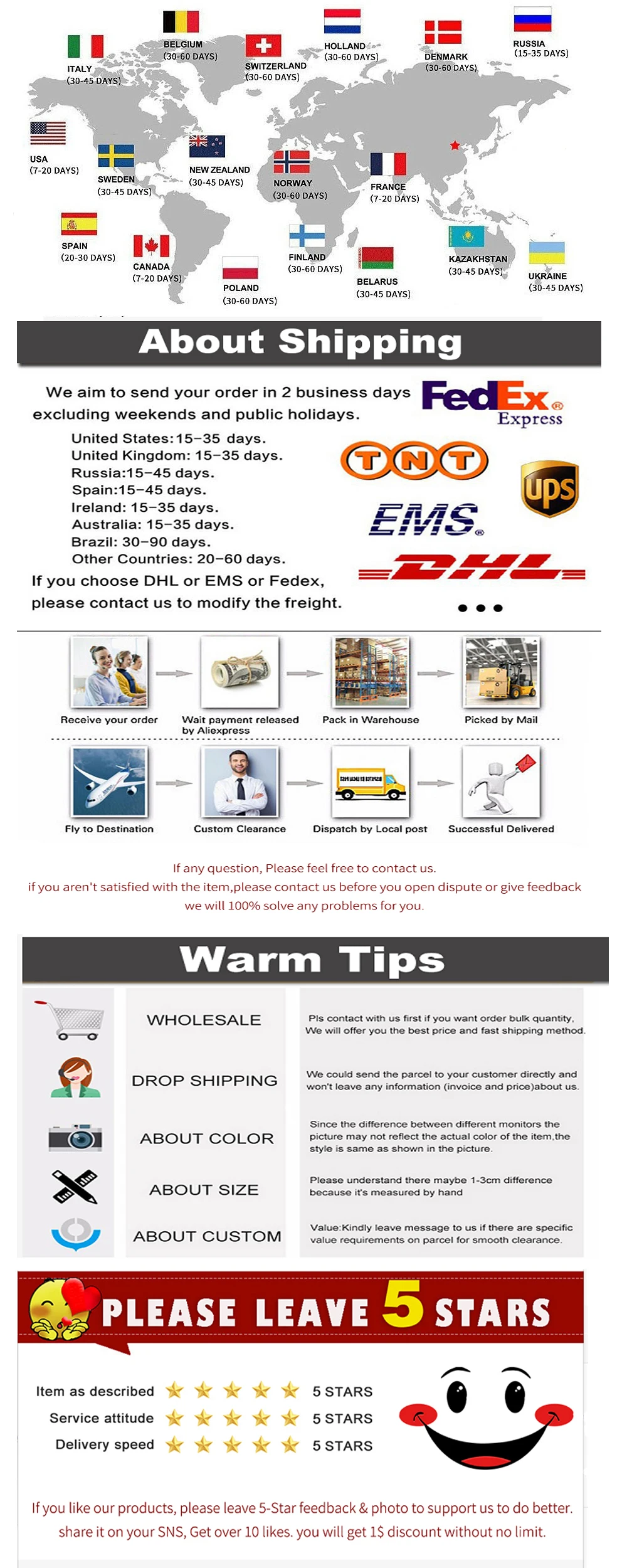Пожалуйста, учитывайте, что 1-3 см отличается из-за ручного измерения и различных партий продукции, вы понимаете. Убедитесь, что вы не возражаете до торгов.