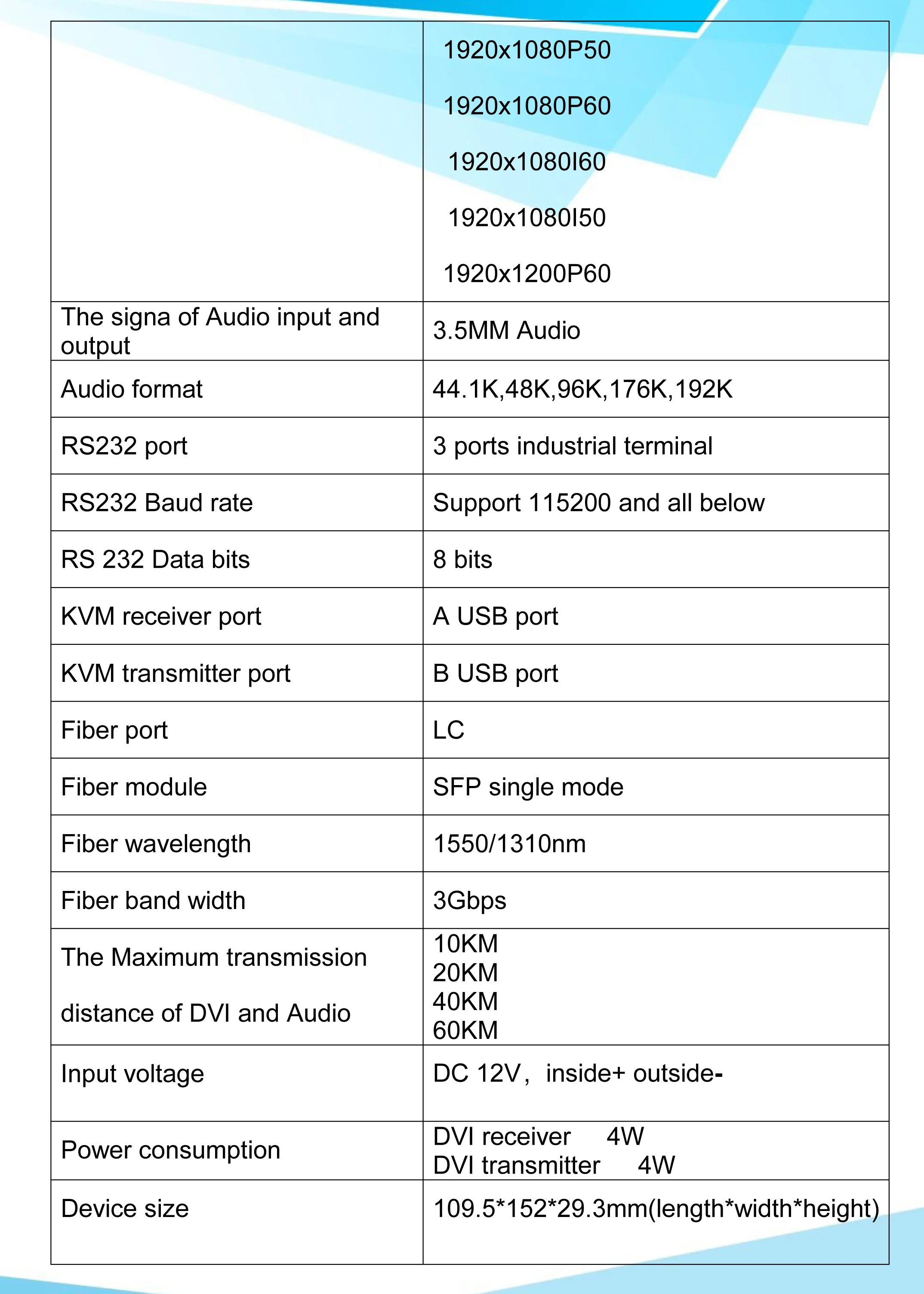 Например: 1Ch DVI + 1Ch 3,5 мм аудио + 1Ch вперед RS232 данных, SM,SX,20 км, 3G LC SFP, евро зарядка