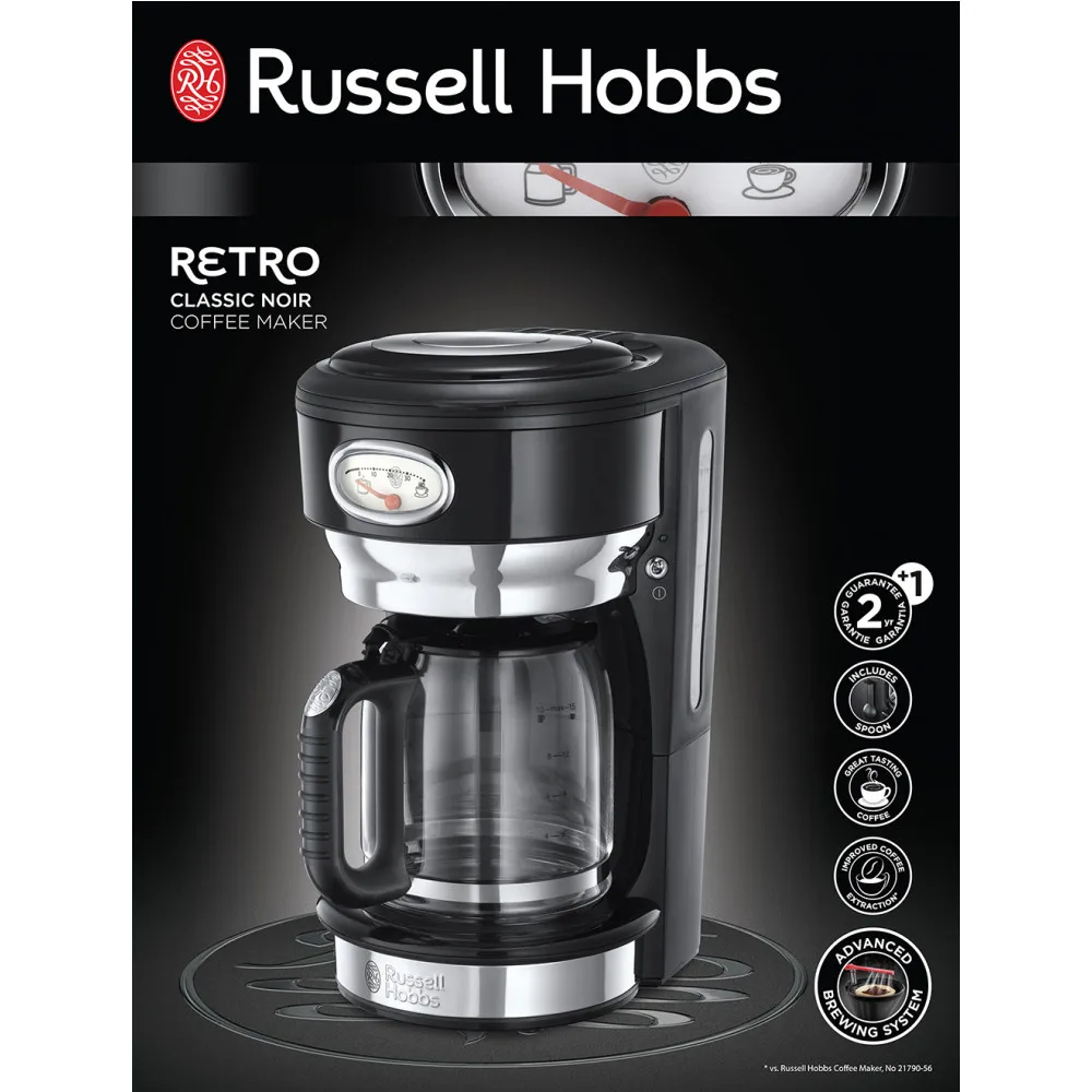 Кофеварка коллекции Retro оснащена винтажной шкалой процесса заваривания кофе. Это не только стильное дополнение в кофеварке, но и напоминание о том, что кофе лучше выпить в течение определенного времени, ведь со временем вкус и аромат готового напитка теряется. Функция "Пауза" позволит Вам не ожидать пока приготовится весь объем кофе и насладиться первой чашечкой свежесваренного кофе в любой удобный для Вас момент.