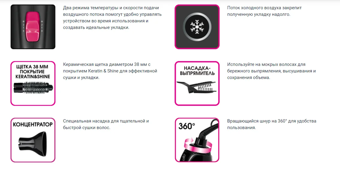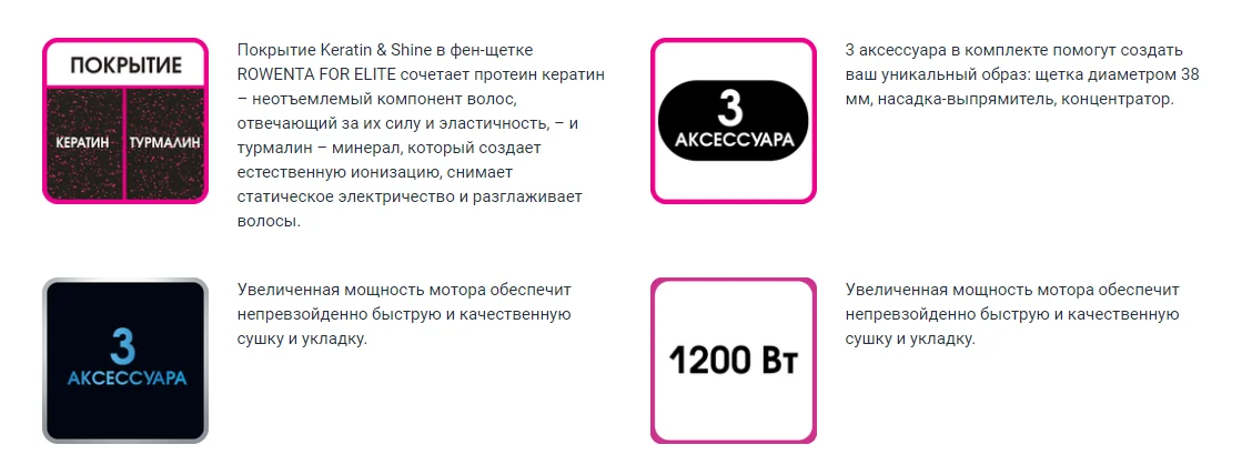 Фен-щетка Rowenta Elite Hot Air Brush поможет создать разнообразные укладки в вашем стиле быстро и легко благодаря целому набору полезных функций в одном устройстве. Эксклюзивное покрытие Keratin & Shine сочетает в себе кератин и турмалин, которые подчеркивают естественное сияние ваших волос и снимают статическое электричество благодаря естественной ионизации. Три аксессуара и набор различных настроек помогут вам персонализировать процесс укладки и создать ваш уникальный образ на любом типе волос. Мощность 1200 Вт обеспечивает быстрый и эффективный результат. Поток холодного воздуха закрепит получившуюся укладку надолго. С Rowenta Elite Hot Air Brush ваши волосы будут выглядеть потрясающе в любой укладке.