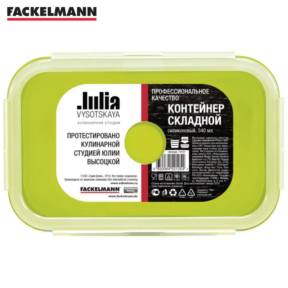 Контейнер складной, силиконовый Julia Vysotskaya, 540мл - высококачественный пищевой контейнер, отлично держит форму при использовании и складывается до 3 см при хранении. Экономия места на кухне и в сумке.