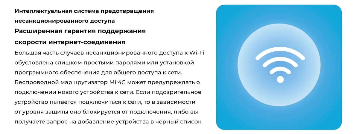 Маршрутизатор Xiaomi Mi Router 4C – популярная модель от широко известного производителя мобильных устройств и сетевого оборудования. Вы сможете обеспечить интернет-подключением всю использующую интернет-ресурсы технику, имеющую в своем оснащении модуль Wi-Fi. Примерами такого оборудования могут являться не только компьютеры (как стационарные, так и мобильные) и портативные средства связи, но и, в частности, телевизоры. Беспроводная передача данных происходит в 2.4-гигагерцовом диапазоне. Максимальная скорость в диапазоне 2.4 ГГц равна типовым 300 Мбит/с. Эффективность маршрутизатора повышена благодаря поддержке технологии многопотоковой передачи данных MIMO.
