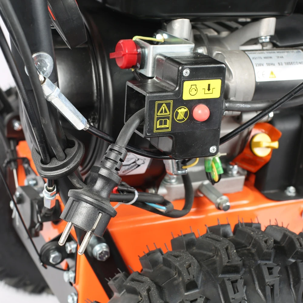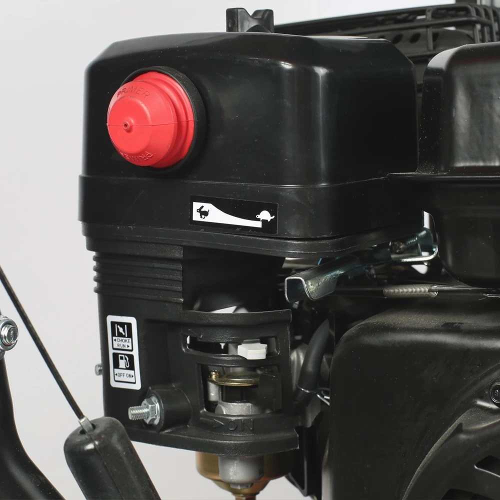 Мощный двигатель 6,5 л.с. позволяет справиться с большим объемом работ. Наличие большого диапазона регулировок скоростей обеспечивает высокую маневренность и позволяет выбрать оптимальный режим работы. В конструкции снегоуборщика используются только подшипники, что увеличивает срок его эксплуатации. Шестерня редуктора шнека выполнена из бронзы, что в десятки раз увеличивает ресурс снегоуборщика. Электростартер дает возможность использовать снегоуборщик в самые сильные морозы, а фара работать в темное время суток.