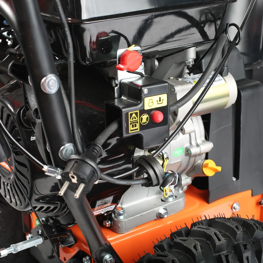Очень мощный колесный снегоуборщик с двигателем 11 л.с., что в сочитании с большой шириной захвата в 70см, наличием фары и электростартера позволяет использовать его в самых сложных условиях и при больших объемах выпавшего снега. Функция "free hand control" дает возможность разворачивать снегоуборщик практически на месте. В конструкции снегоуборщика используются только подшипники, а не втулки. Шестерня редуктора шнека выполнена из бронзы, что в десятки раз увеличивает ресурс снегоуборщика. На заводе производится регулировка и обкатка каждой единицы техники в собранном состоянии.