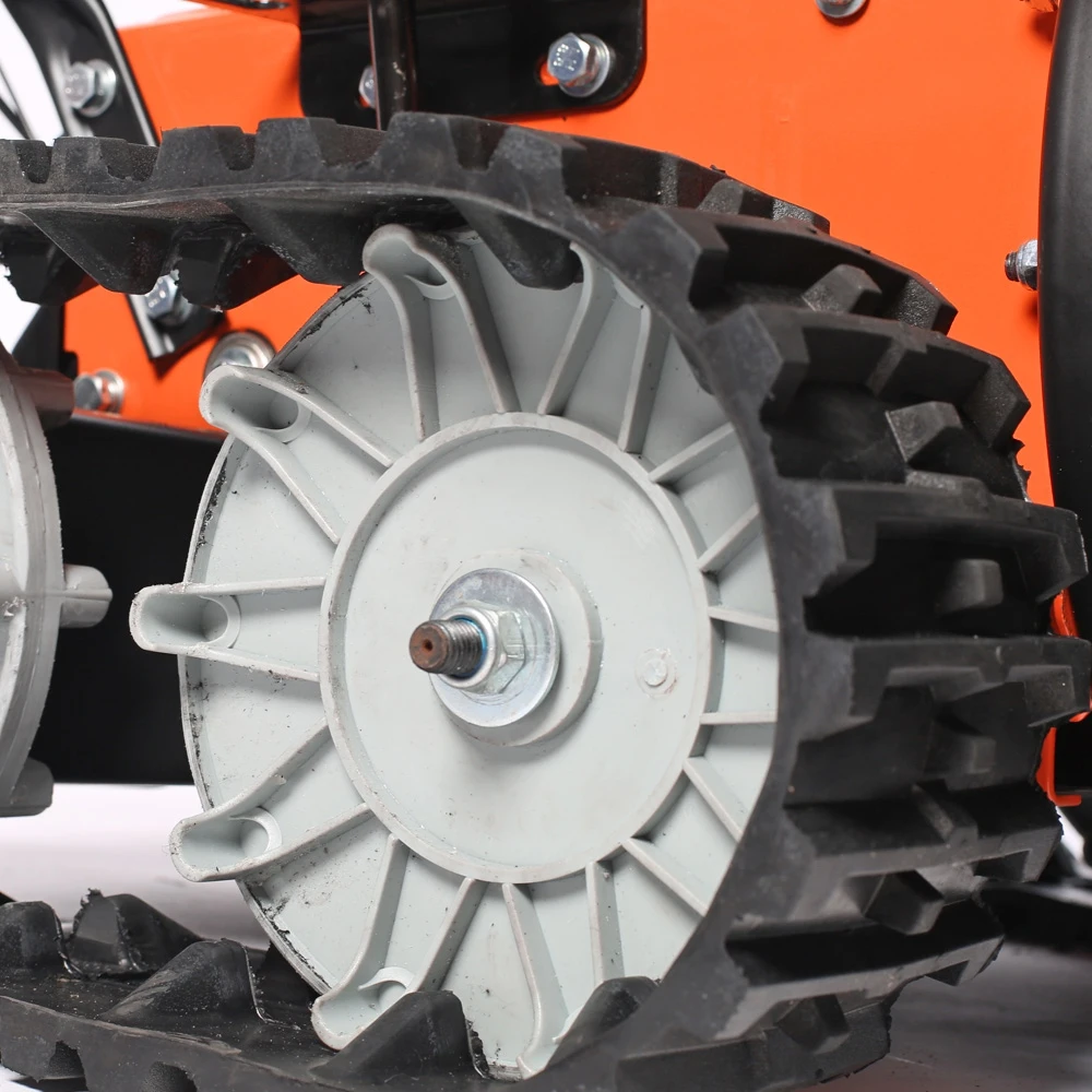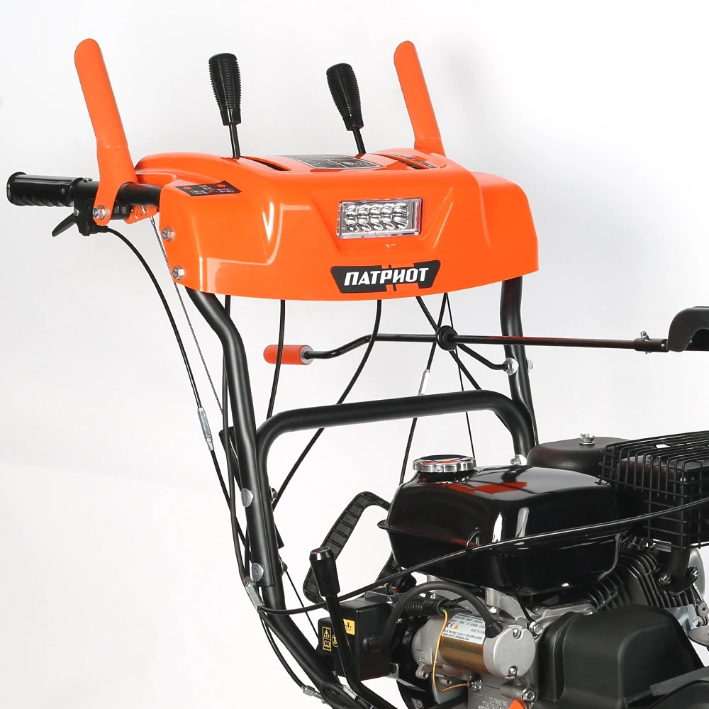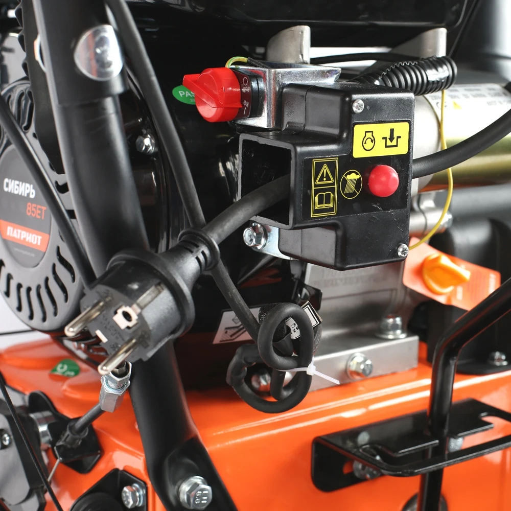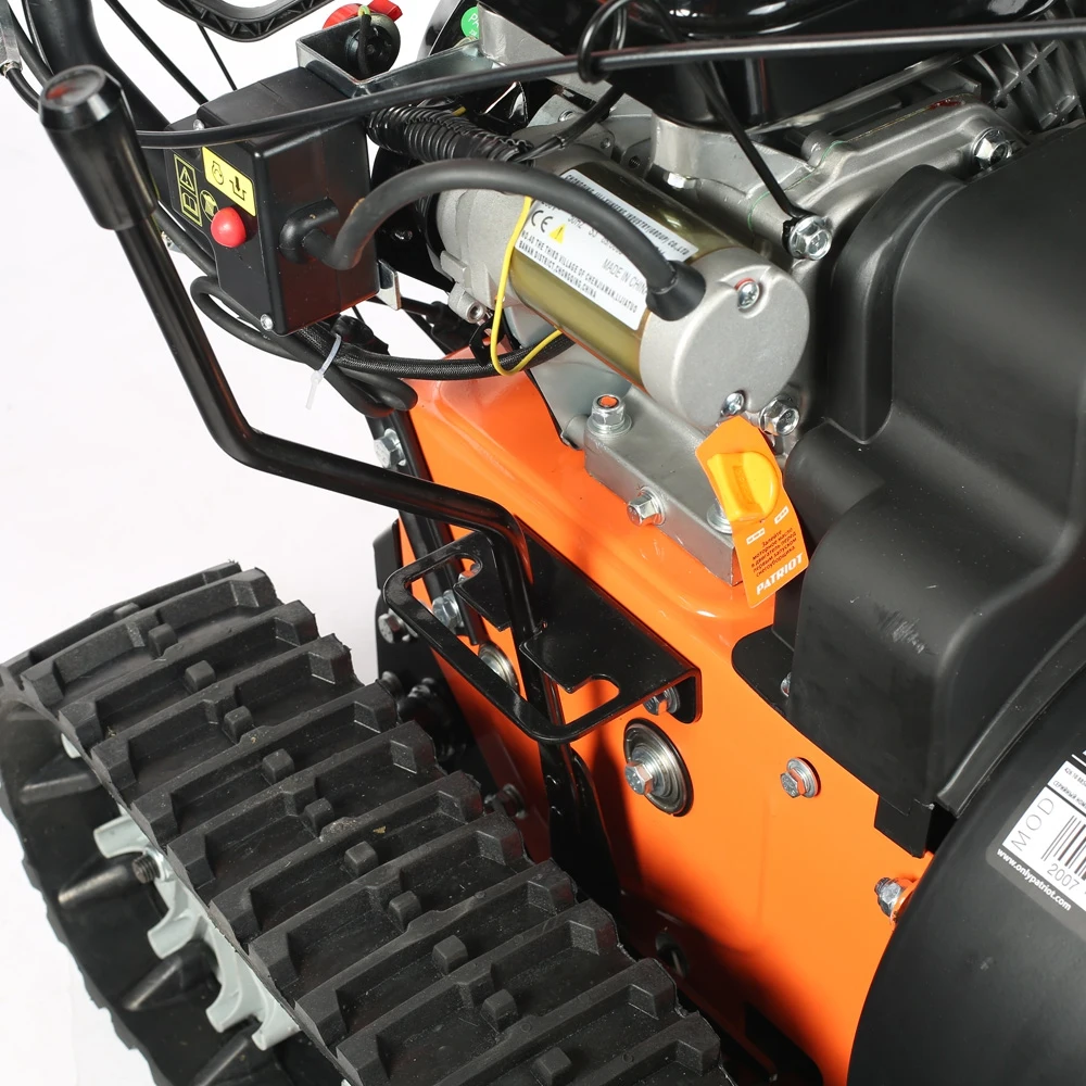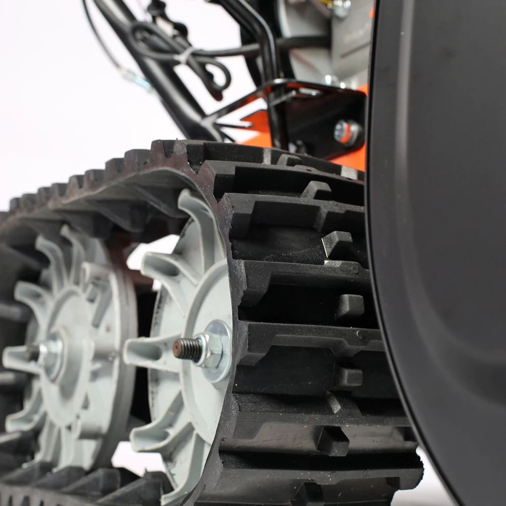 Один из самых "укомплектованных" снегоуборщиков: мощный двигатель 7,8 л.с., фара, электростартер, гусеницы, обеспечивающие максимальное сцепление с заснеженным грунтом. Гусеницы исключают скольжение, что дает возможность убирать тяжелый снег, а легкость разворота обеспечивается блокировкой дифференциала. В конструкции снегоуборщика используются только подшипники, а не втулки. Шестерня редуктора шнека выполнена из бронзы, что в десятки раз увеличивает ресурс снегоуборщика. На заводе производится регулировка и обкатка каждой единицы техники в собранном состоянии.