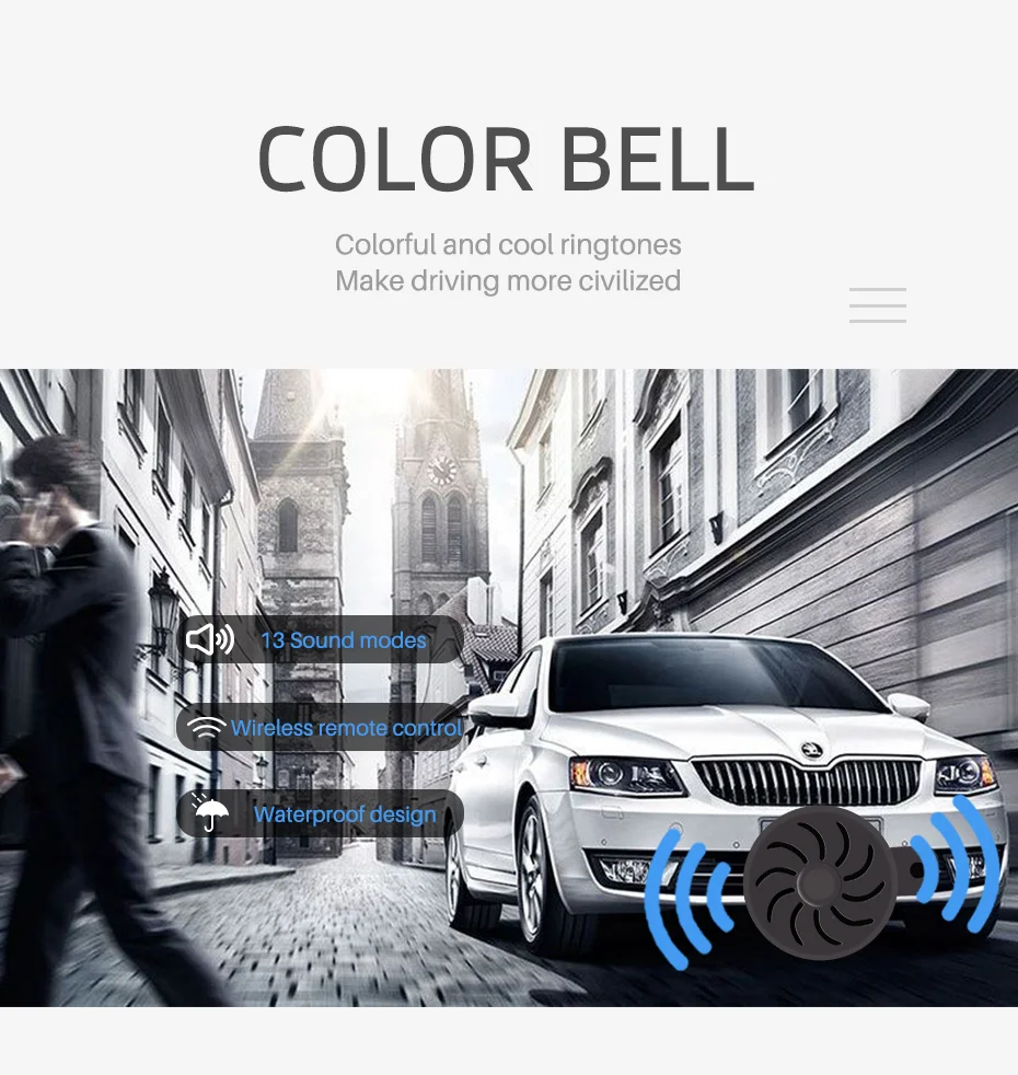 Красочные и крутые мелодии звонка; Одна клавиша для переключения 13 режимов звука; Беспроводной управление; Сделать вождение более цивилизованным!