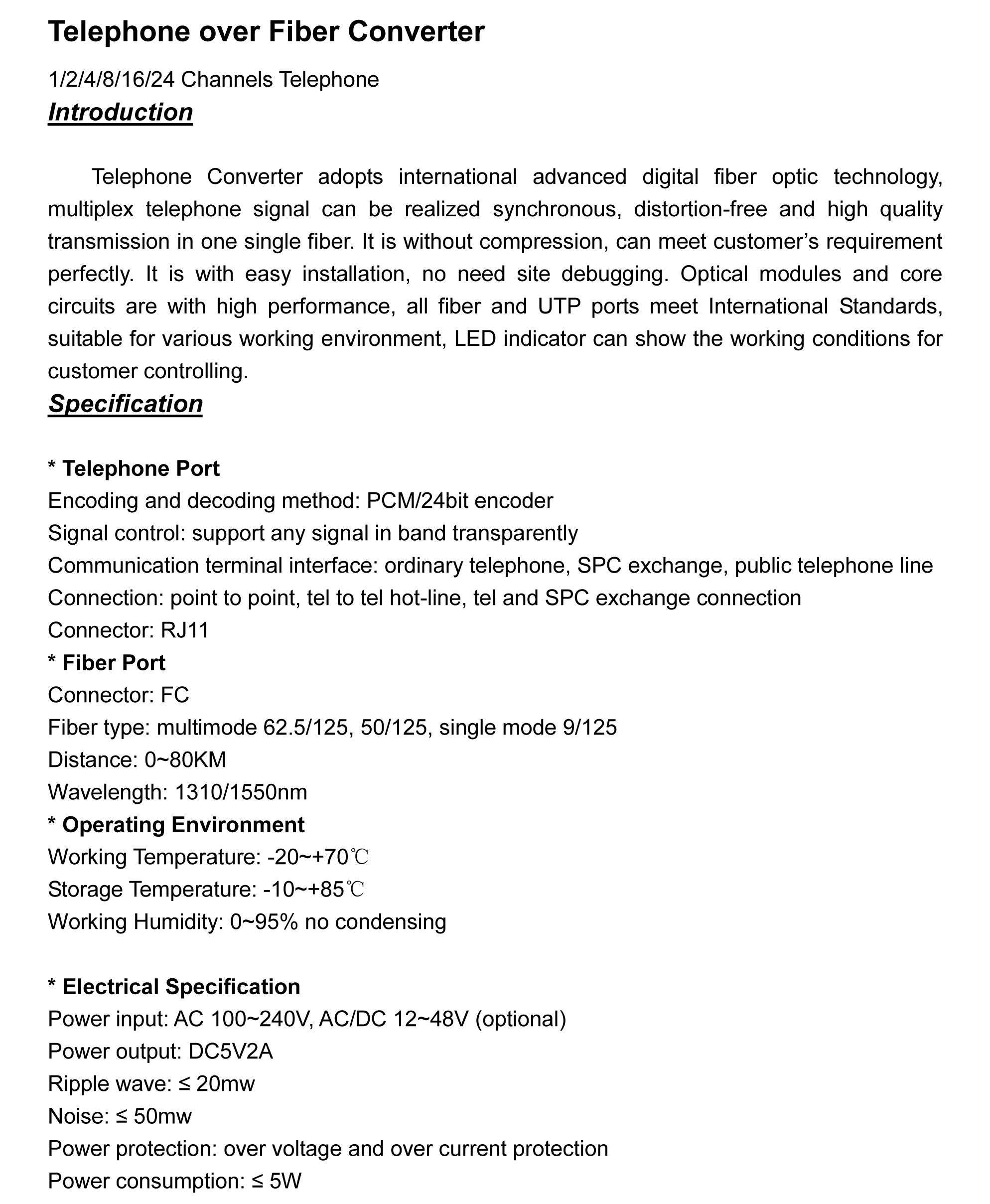 Серия PCM Phone Fiber Over Converter принимает Усовершенствованный дизайн PCM, качество звонков может достигать уровня трансляции.