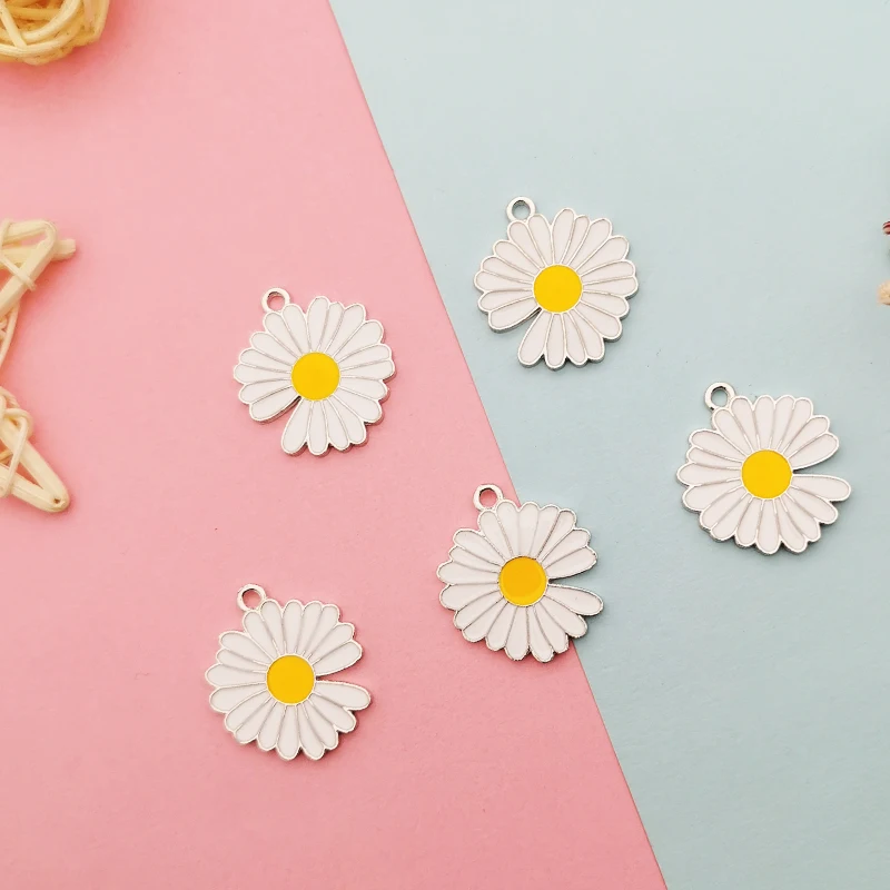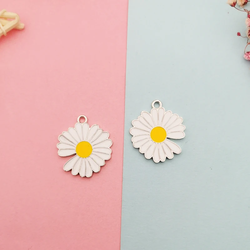 10 шт./Пакет Подвески в виде ромашек Подвески двойное лицо капля масла Солнечный цветок эмалевые Подвески белые K металлические серьги DIY модные ювелирные аксессуары