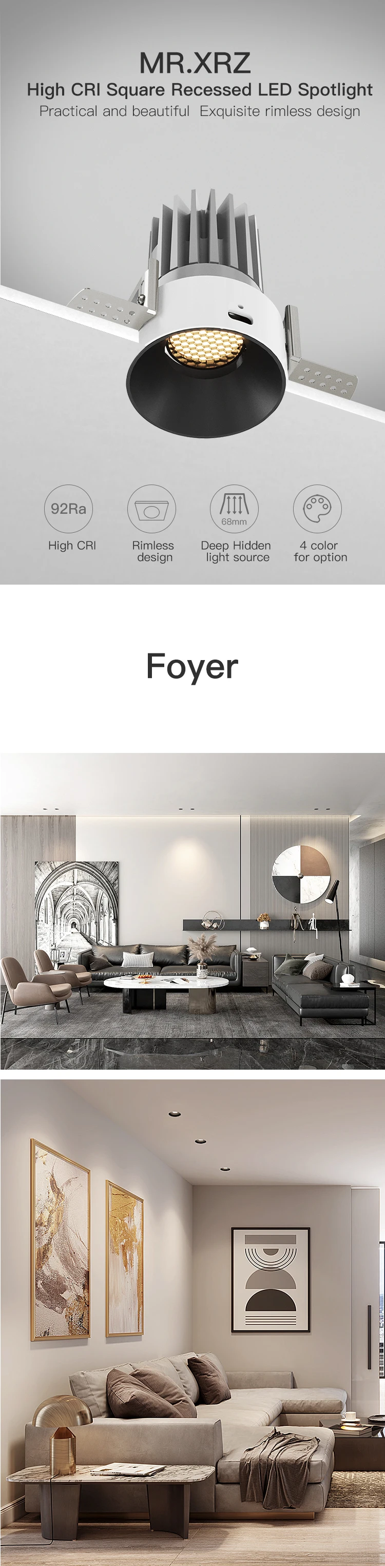 Бренд: MR.XRZ Материал: литой алюминий Цвет круга: черный, белый, зеркальный, золотой Тип источника света: светодиод CRI (индекс цветопередачи (Ra>92) близок к ежедневному видению, который защищает глаза и больше подходит для чтения) Бренд чипов: CITIZEN Chips Драйвер: PHILIPS Мощность: 9 Вт 13 Вт Световой поток: 70 лм/Вт Угол луча: 30 градусов Цветовая температура: теплый белый (3000 К), натуральный белый (4000 к) Гарантийный срок: 2 года Срок службы: 25000 часов
